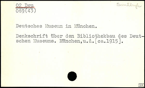 Deutsches Museum in München. Denkschrift über den Bibliothekbau des Deutschen Museums. München,u.a.[ca.1915].