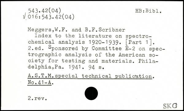 Index to the literature on spectro-chemical analysis 1920-1939, [Part 1].