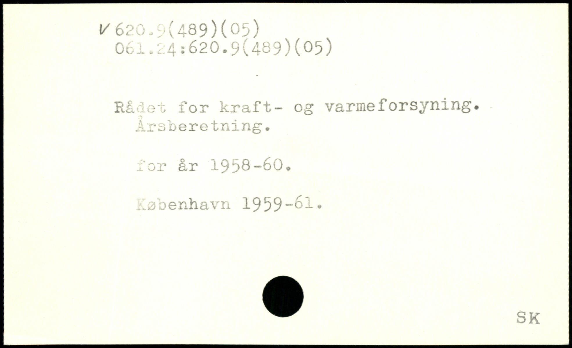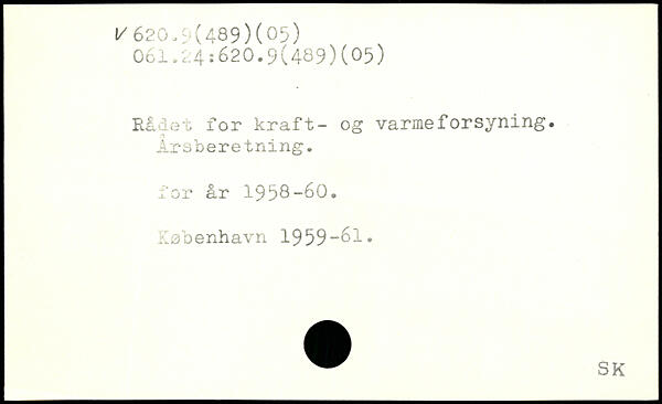 Rådet for kraft- og varmeforsyning. Ar s bere tning. for år 1958-60.