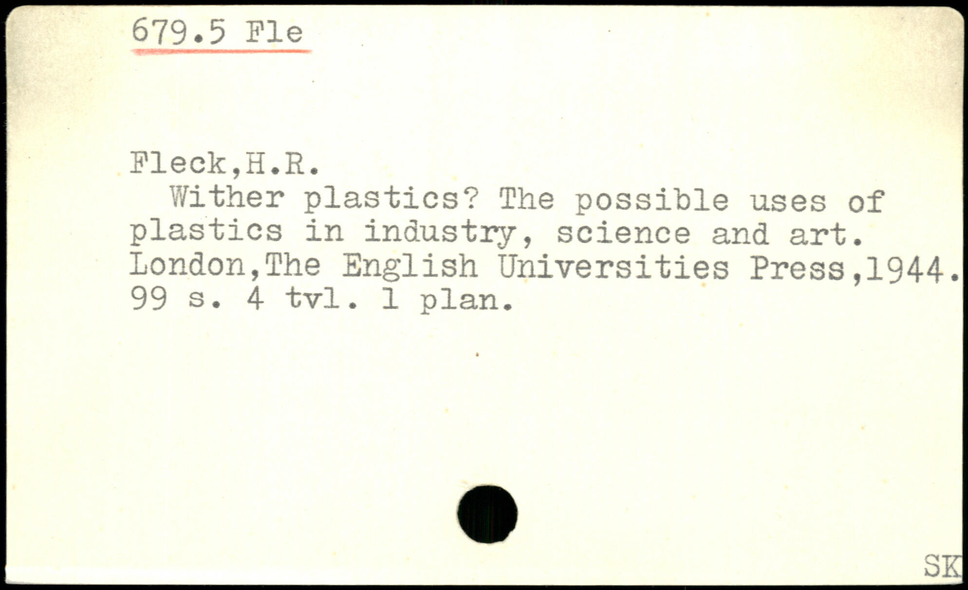 Wither plastics? The possible uses of plastics in industry, science and art.