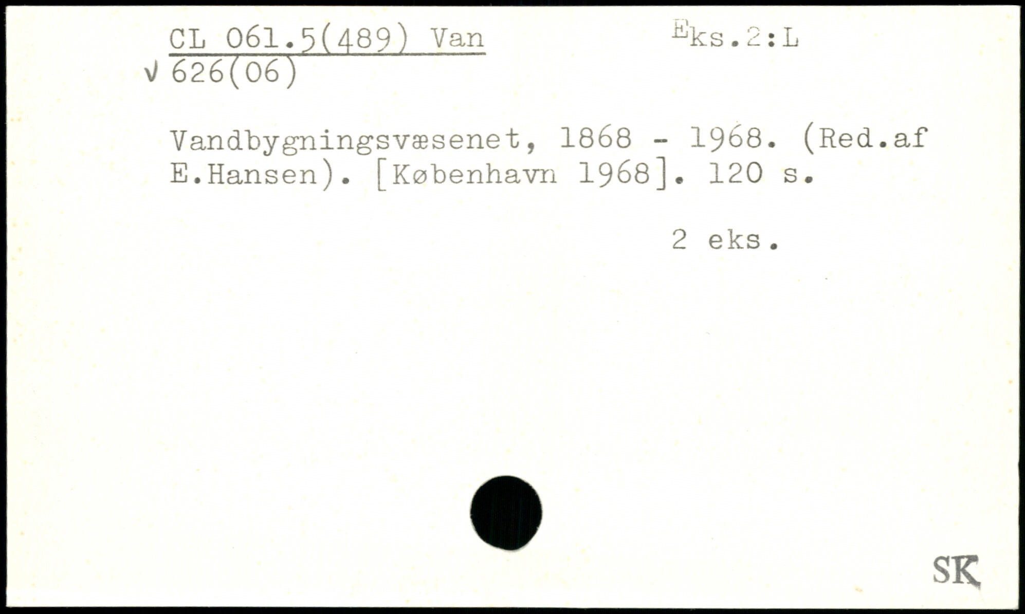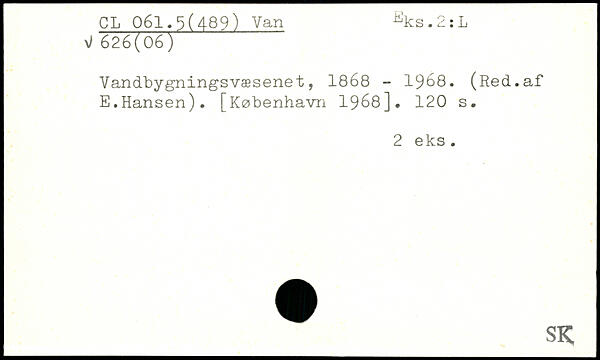 Vandbygningsvæsenet, 1868 - 1968. (Red.af E.Hansen).