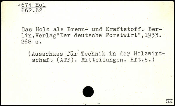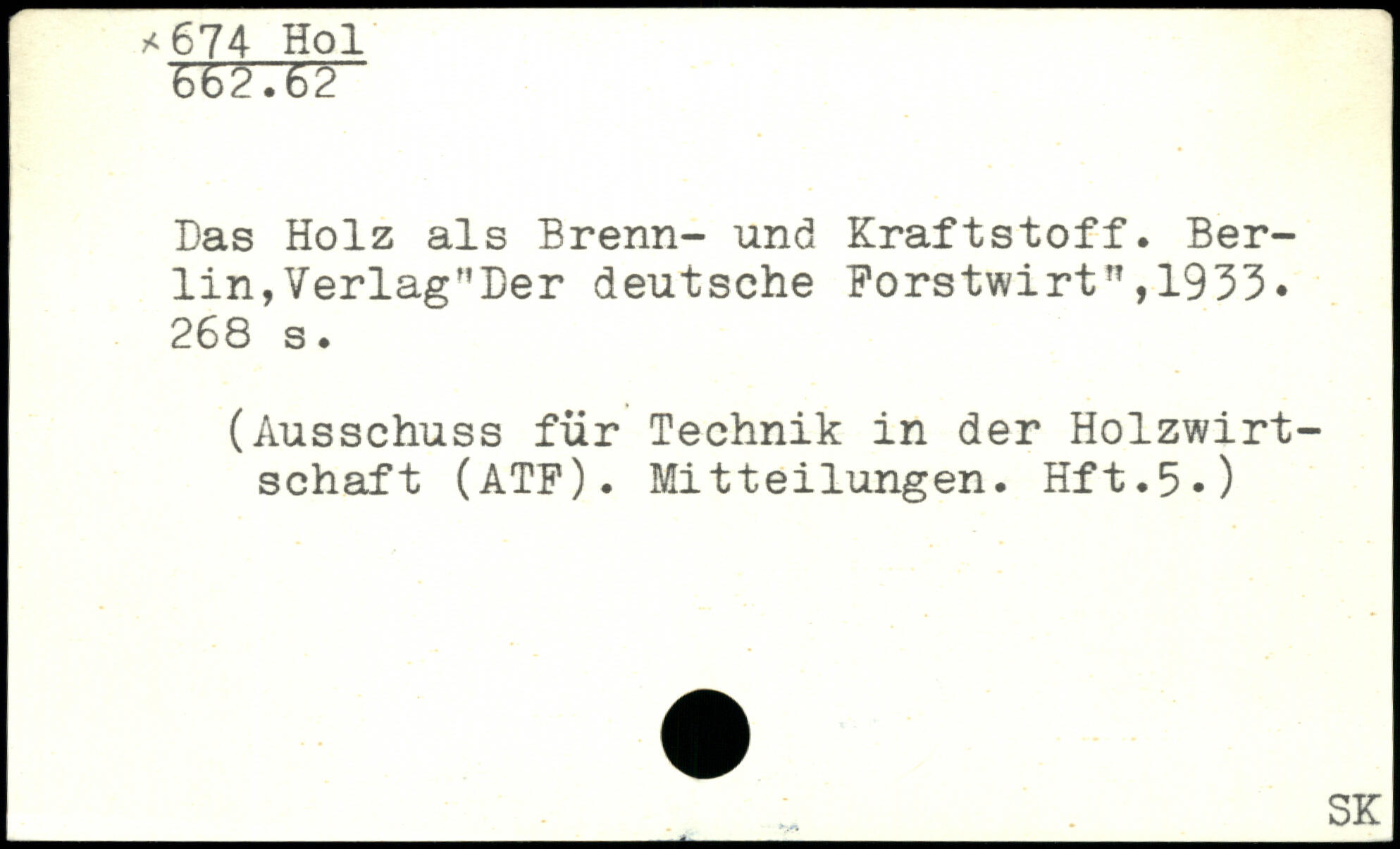 Das Holz als Brenn- und Kraftstoff. Berlin, Verlag"Ber deutsche Forstwirt",1933.