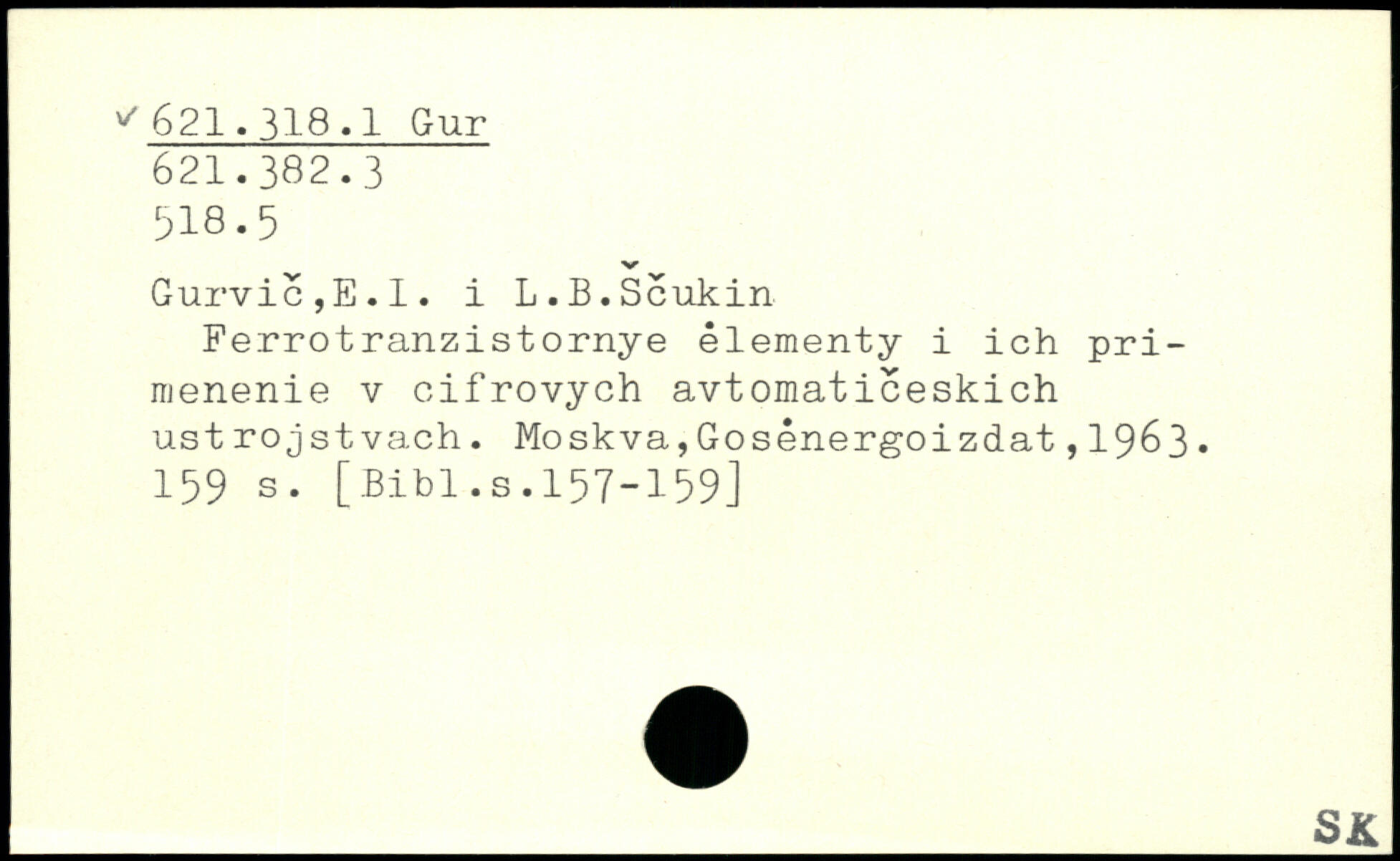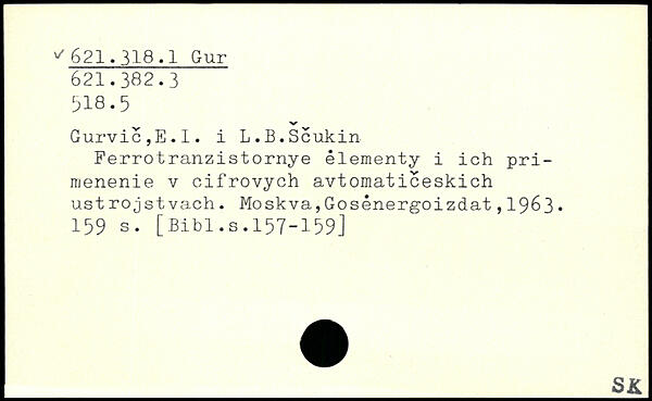 Gurvic,E.l. i L.B.Scukin Ferrotranzistornye élementy i ich pri-menenie v cifrovych avtornaticeskich ustrojstvach.