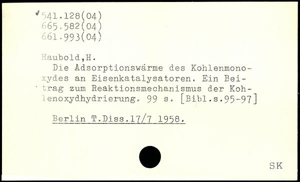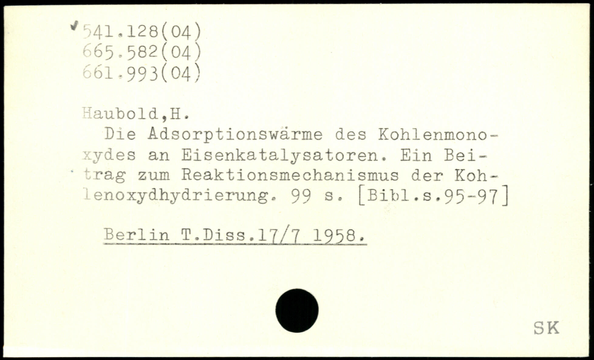 Die Adsorptionswärme des Kohlenmonoxydes an Eisenkatalysatoren. Ein Bei-■ trag zum Reaktionsmechanismus der Koh- I 'enoxydhydrierung.