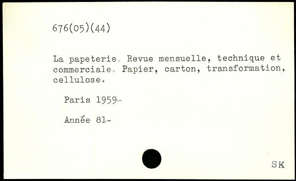 La papeterie. Revue mensuelle, technique et commercialeo Papier, carton, transformation, cellulose.