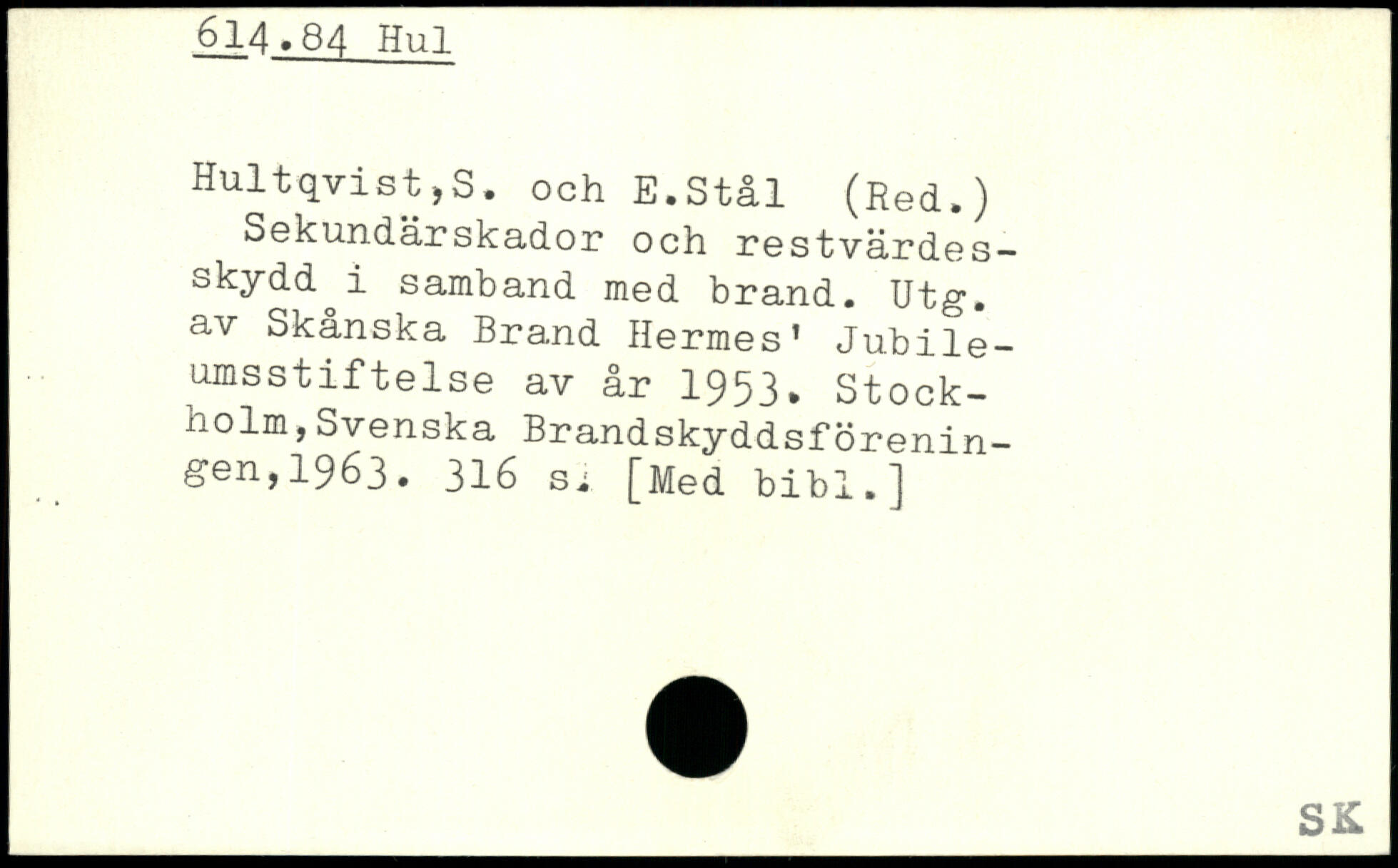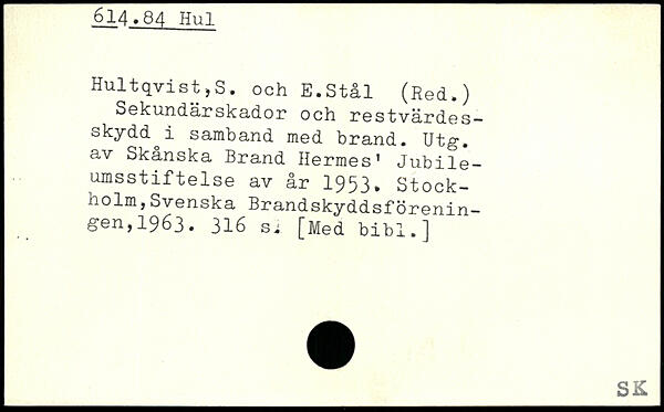 Sekundärskador och restvärdes-skydd^i samband med brand. Utg. av Skånska Brand Hermes’ Jubile-umsstiftelse av år 1953.