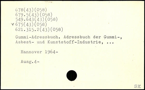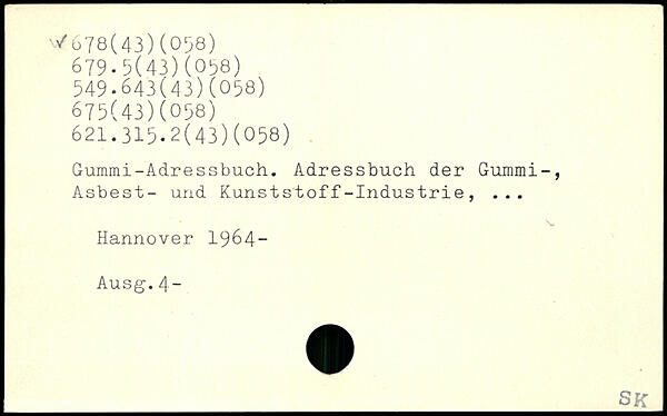Gummi-Adressbuch. Adressbuch der Gummi-, Asbest- und Kunststoff-Industrie, ...