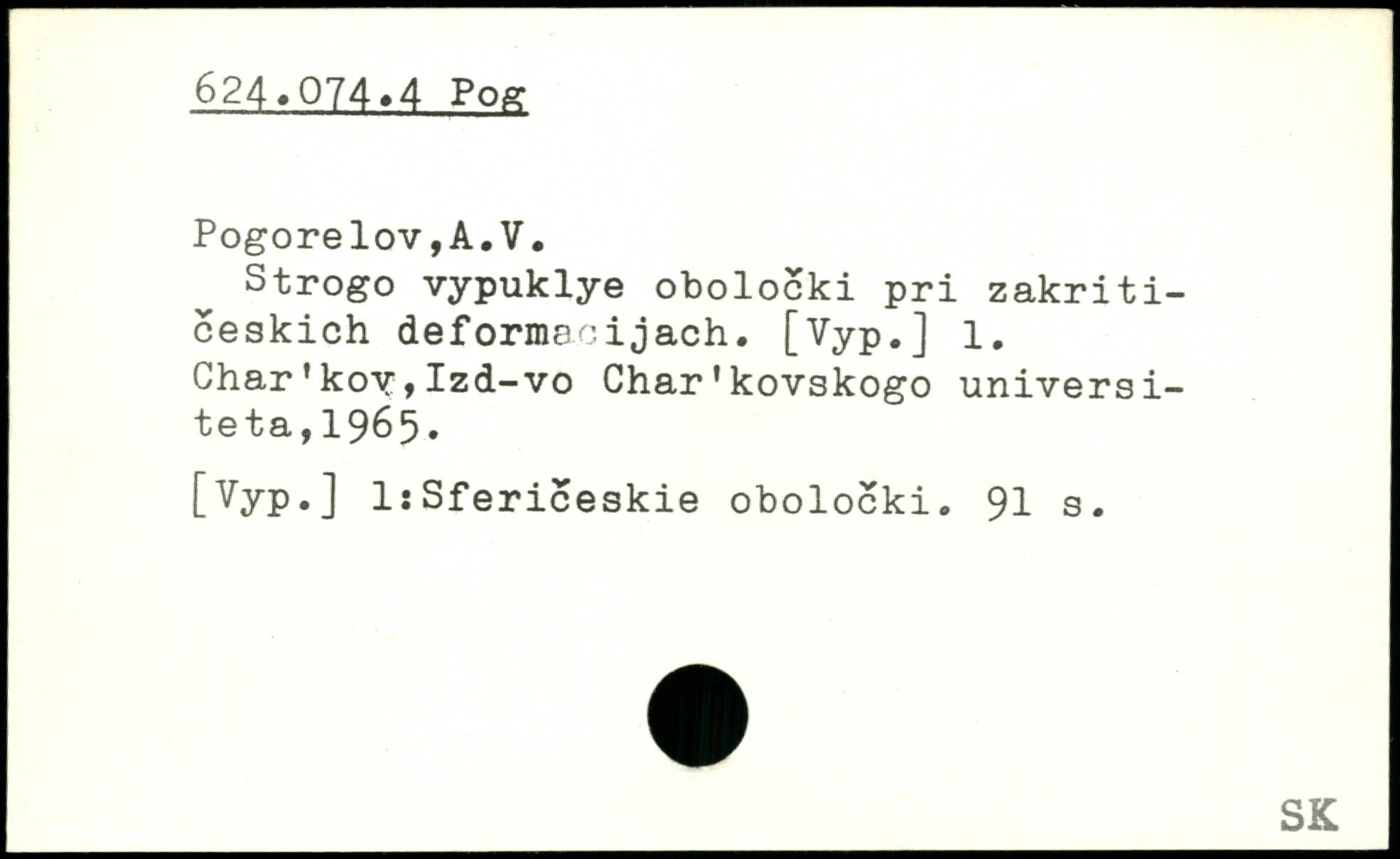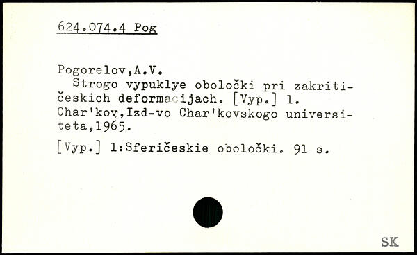 Strogo vypuklye obolocki pri zakriti-ceskich deformacijach. [Vyp.] 1. Char’kov,Izd-vo Char’kovskogo universiteta, 1965.