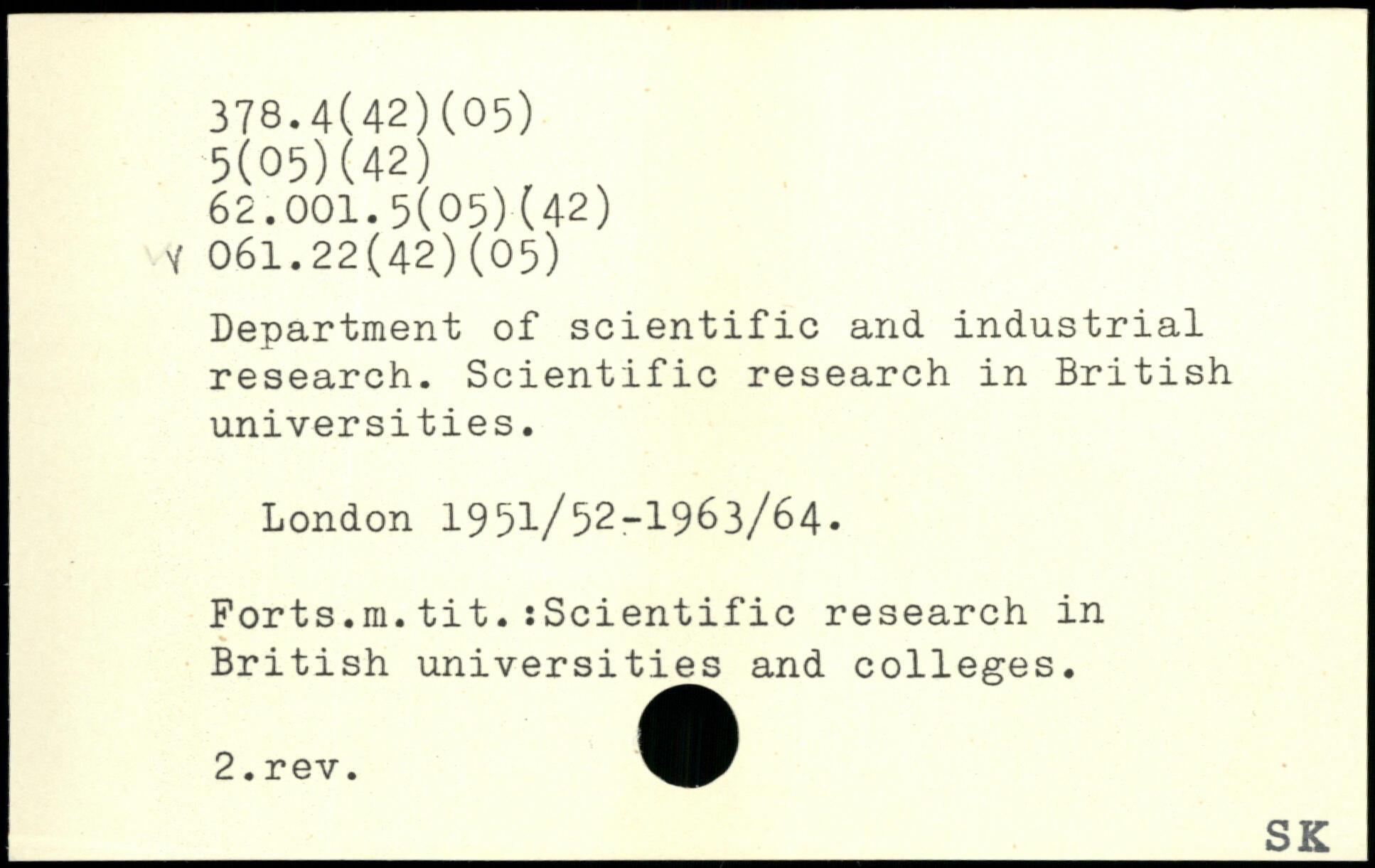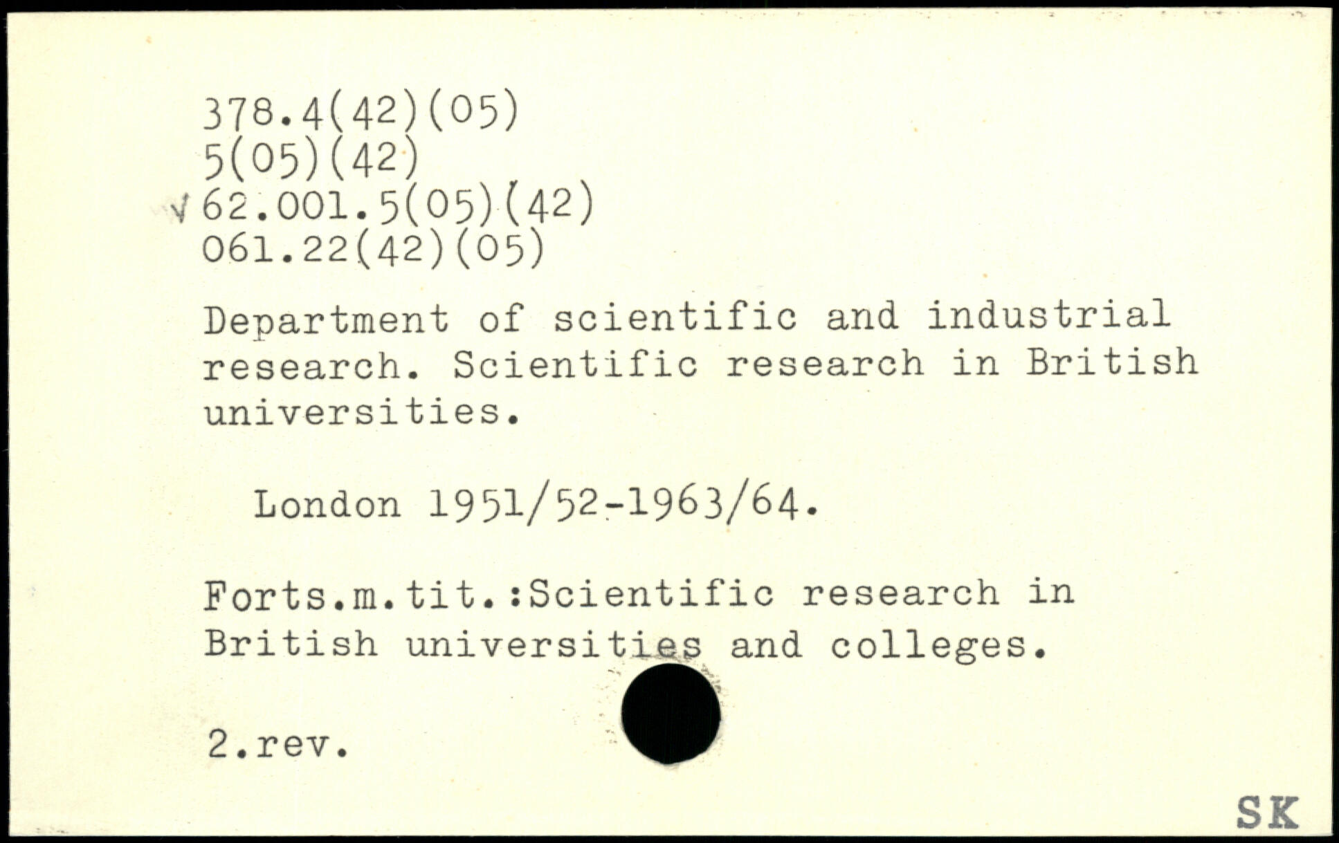 Department of scientific and industrial research. Scientific research in British universities.