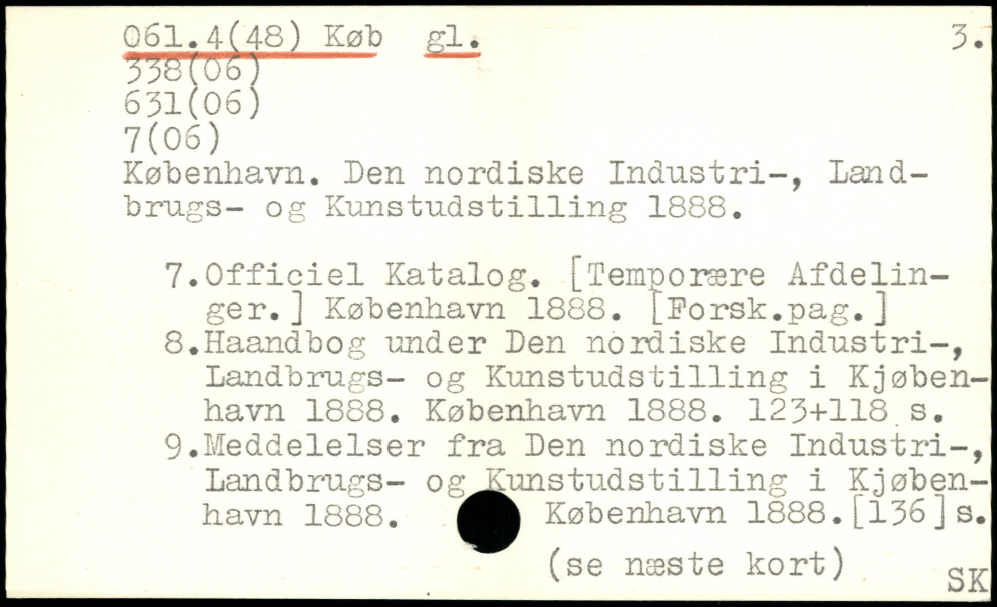 København. Den nordiske Industri-, Land-brugs- og Kunstudst1111ng 1888. 7.Officiel Katalog. [Temporære Afdelinger. ]