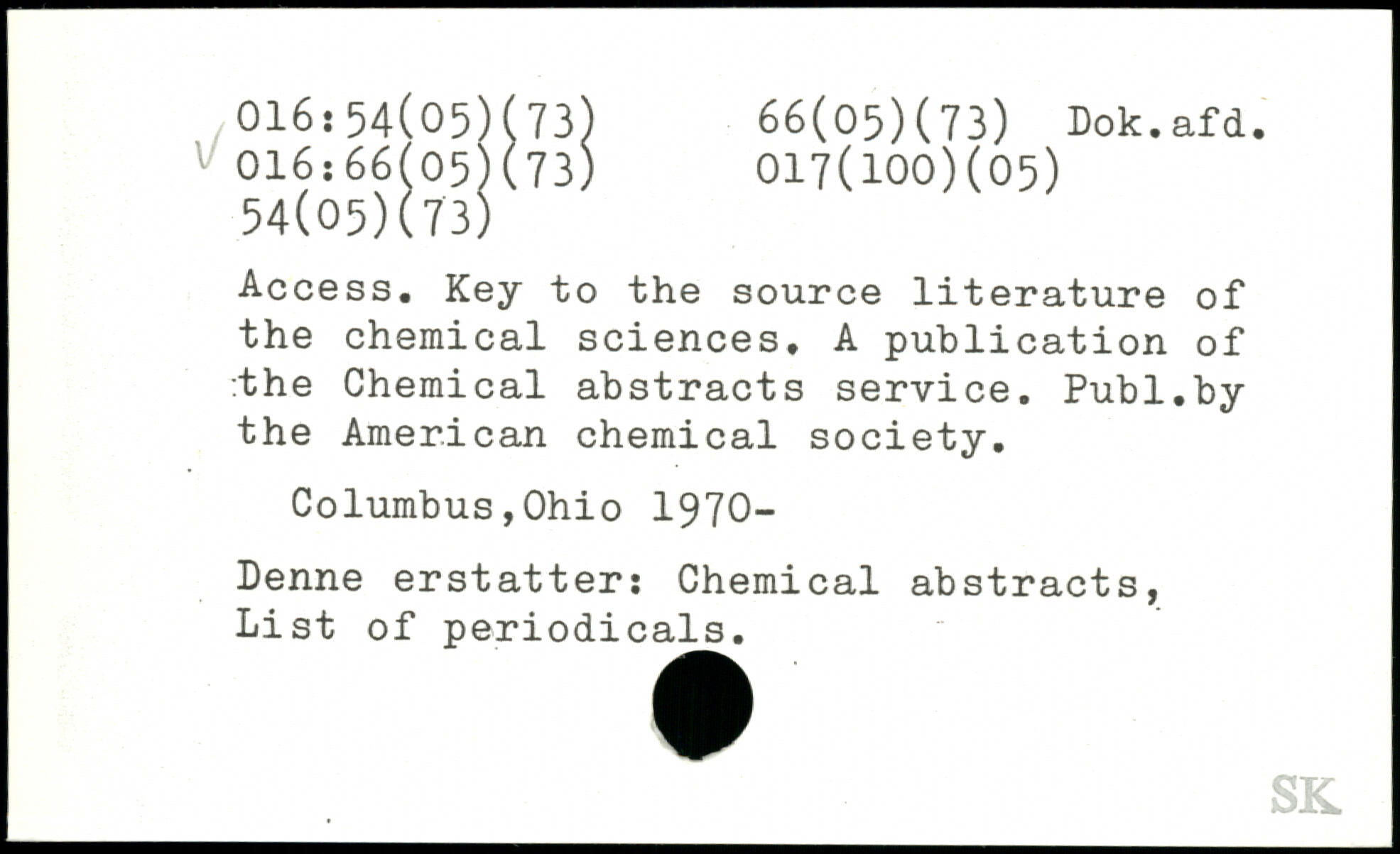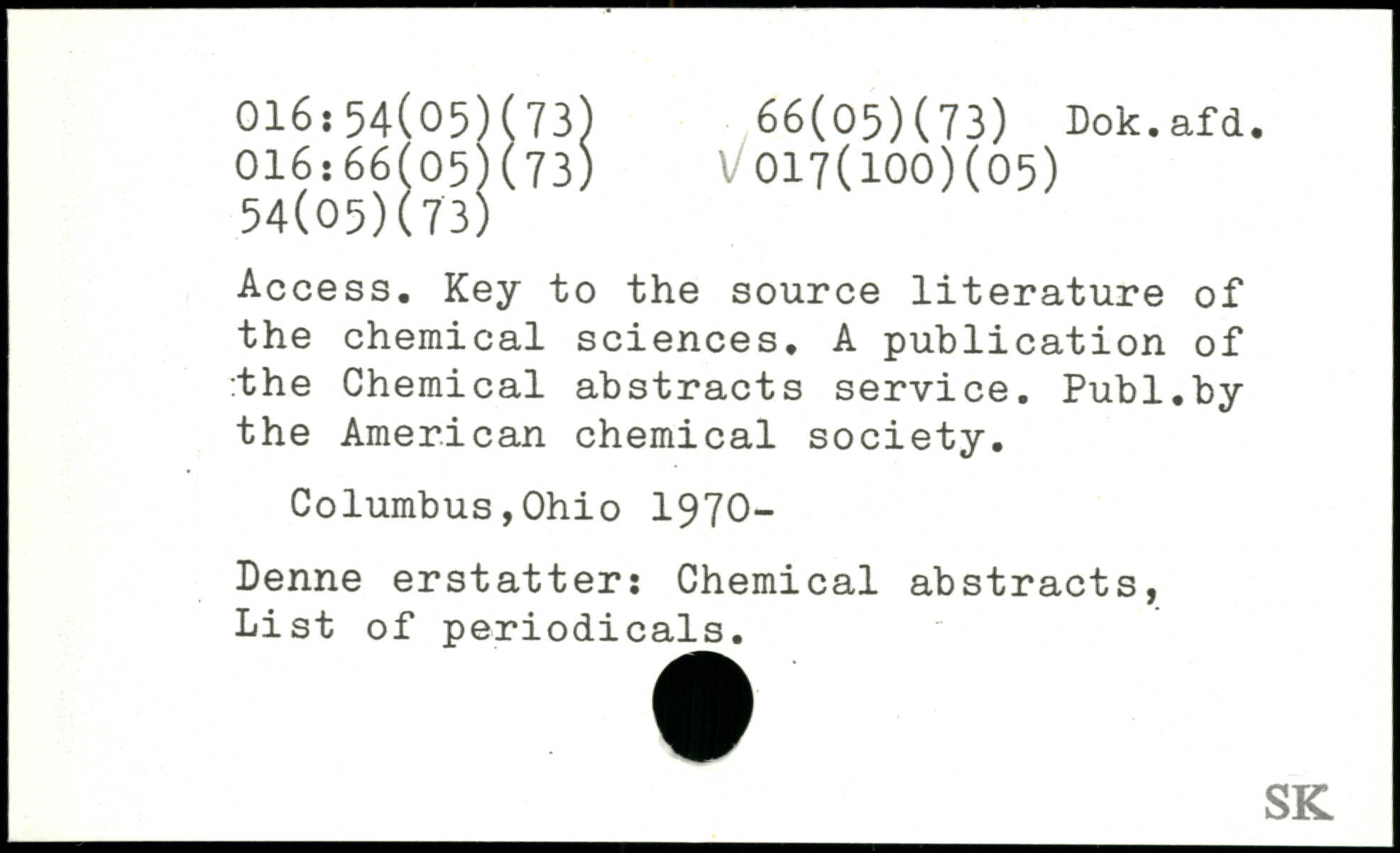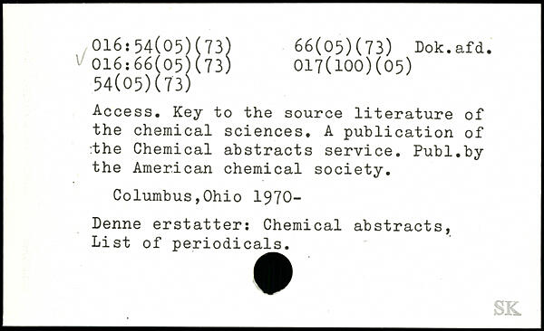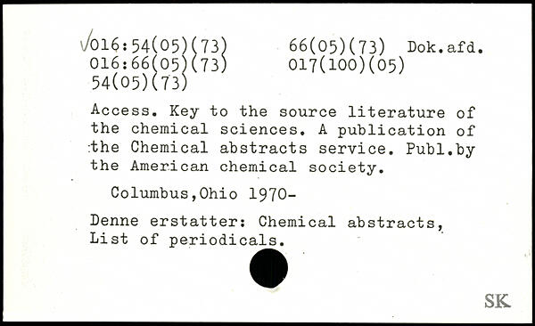 Access. Key to the source literature of the chemical sciences. A publication of :the Chemical abstracts service.