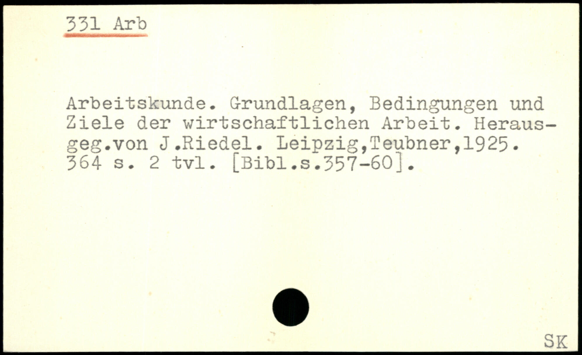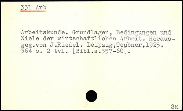 Arbeitskunde. G-rundlagen, Bedingungen und Ziele der wirtschaftlichen Arbeit. Heraus-geg.von J.Riedel.