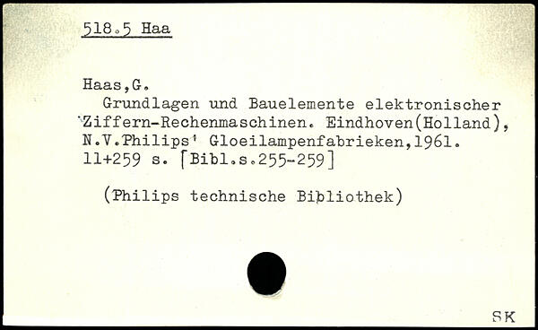 Grundlagen und Bauelemente elektronischer 'Ziffern-Rechenmaschinen. Eindhoven(Holland), N.V.Philips’ Gloeilampenfahrieken,1961.