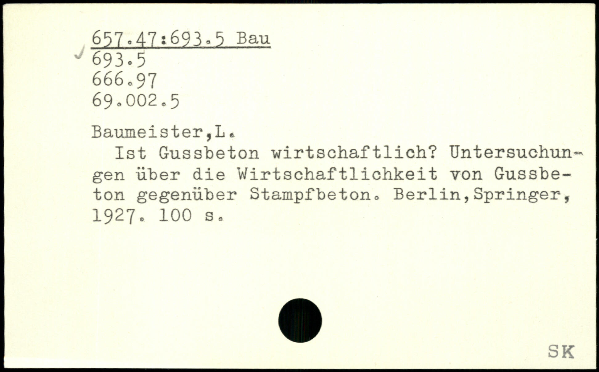 UDK: 657.47:693.5 Bau, 693.5, 666.97