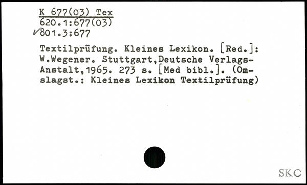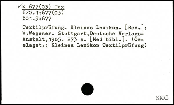 Textilprüfung. Kleines Lexikon. [Red.]: W.Wegener.