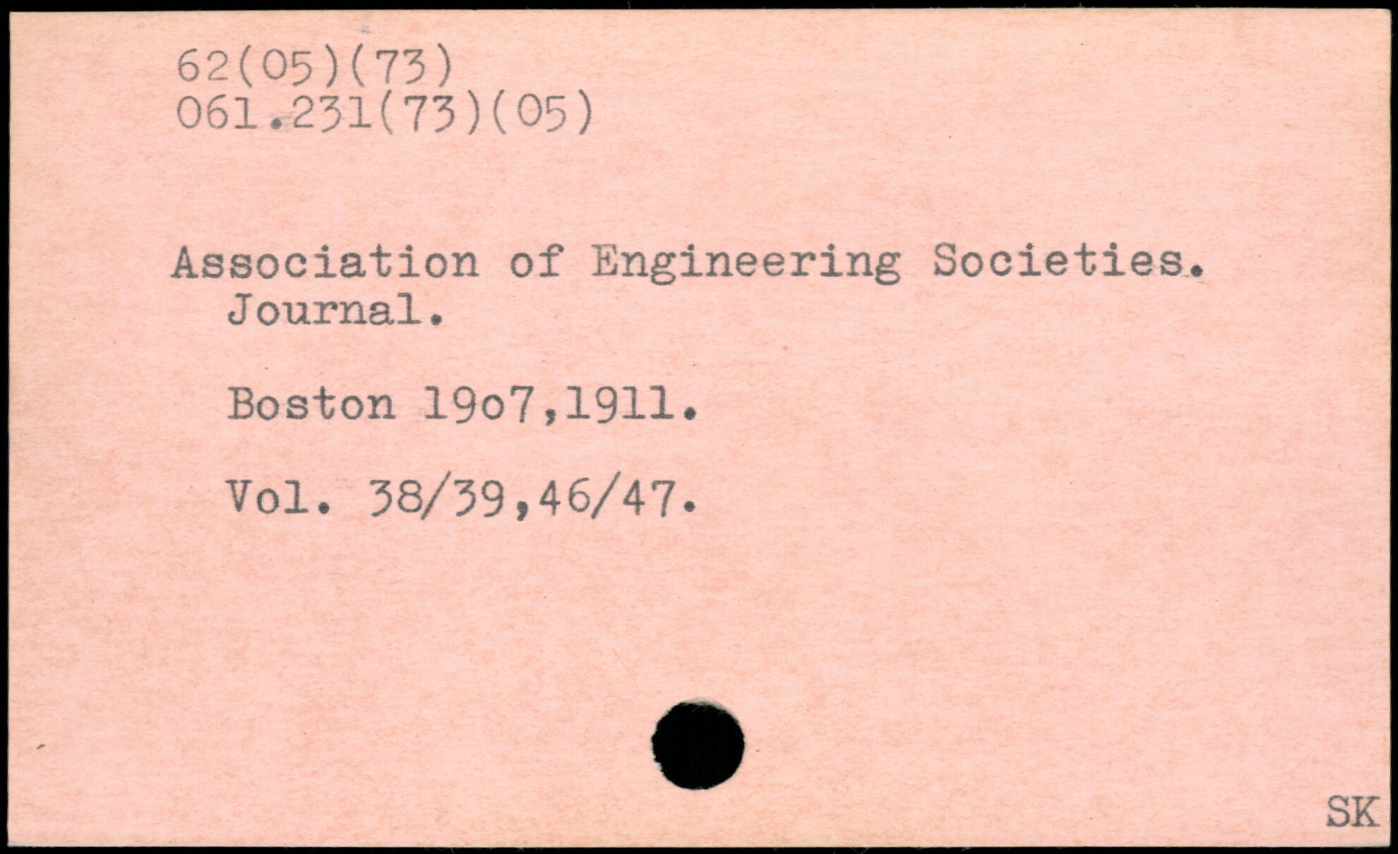 Association of Engineering Societies. J ournal. Boston 19o7,1911. Vol. 38/39,46/47.