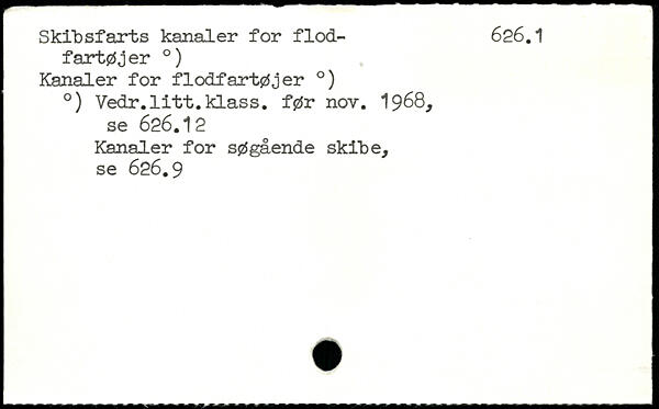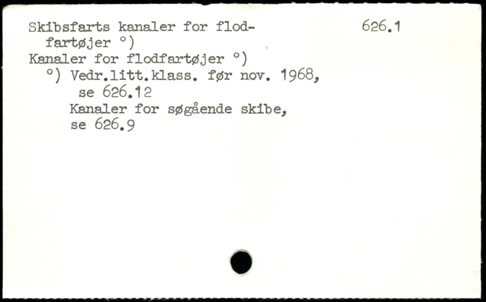 Skibsfarts kanaler for flod- 626.1 fartøjer .) Kanaler for flodfartøjer .) .) Vedr.litt.klass. før nov. 1968, se 626.12 Kanaler for søgående skibe, se 626.9