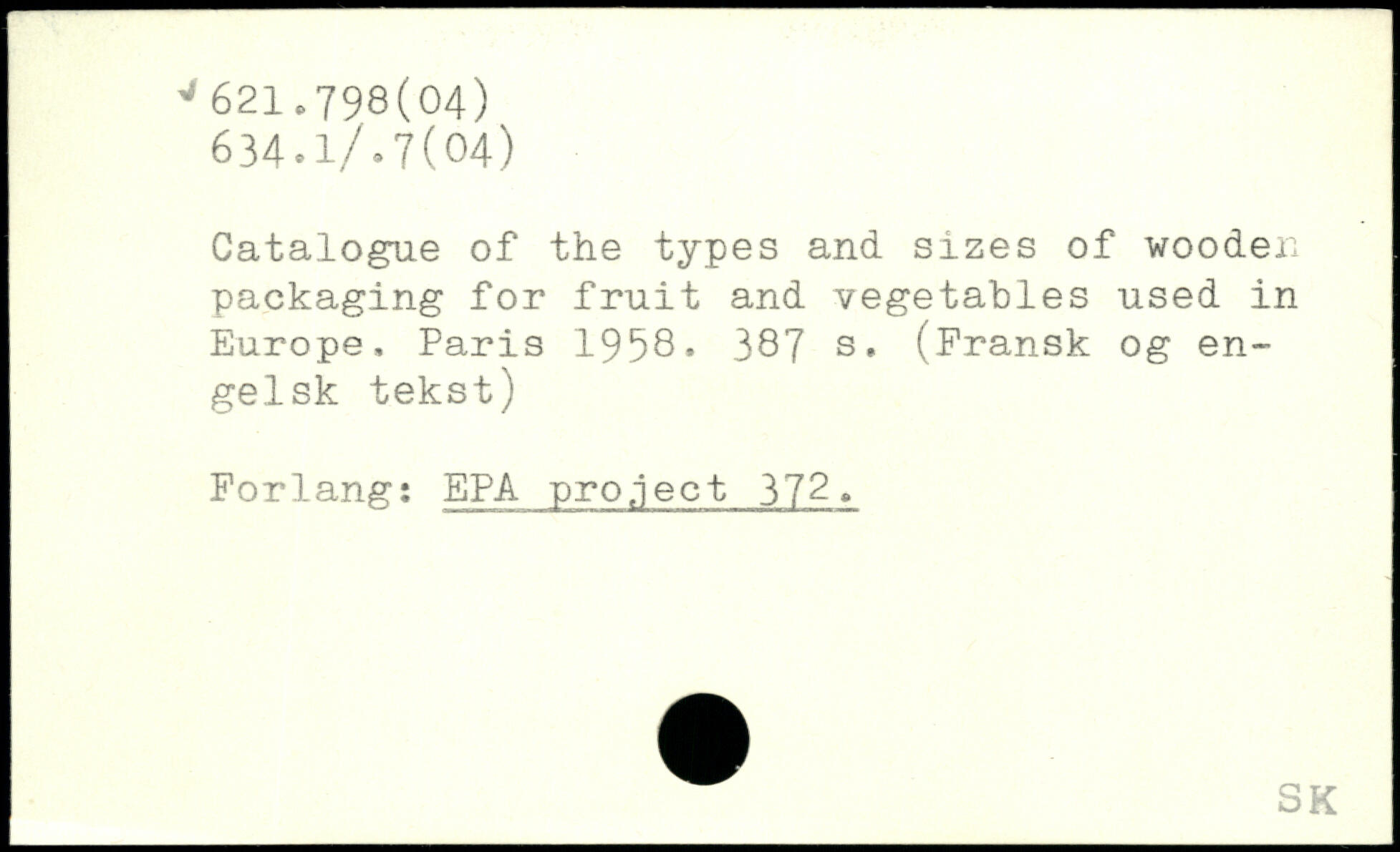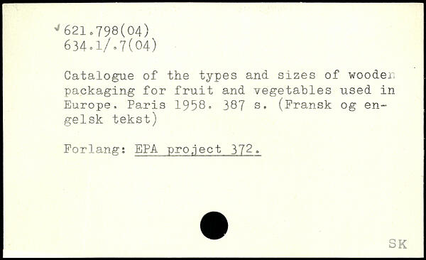 Catalogue of the types and sizes of wooden packaging for fruit and vegetables used in Europe