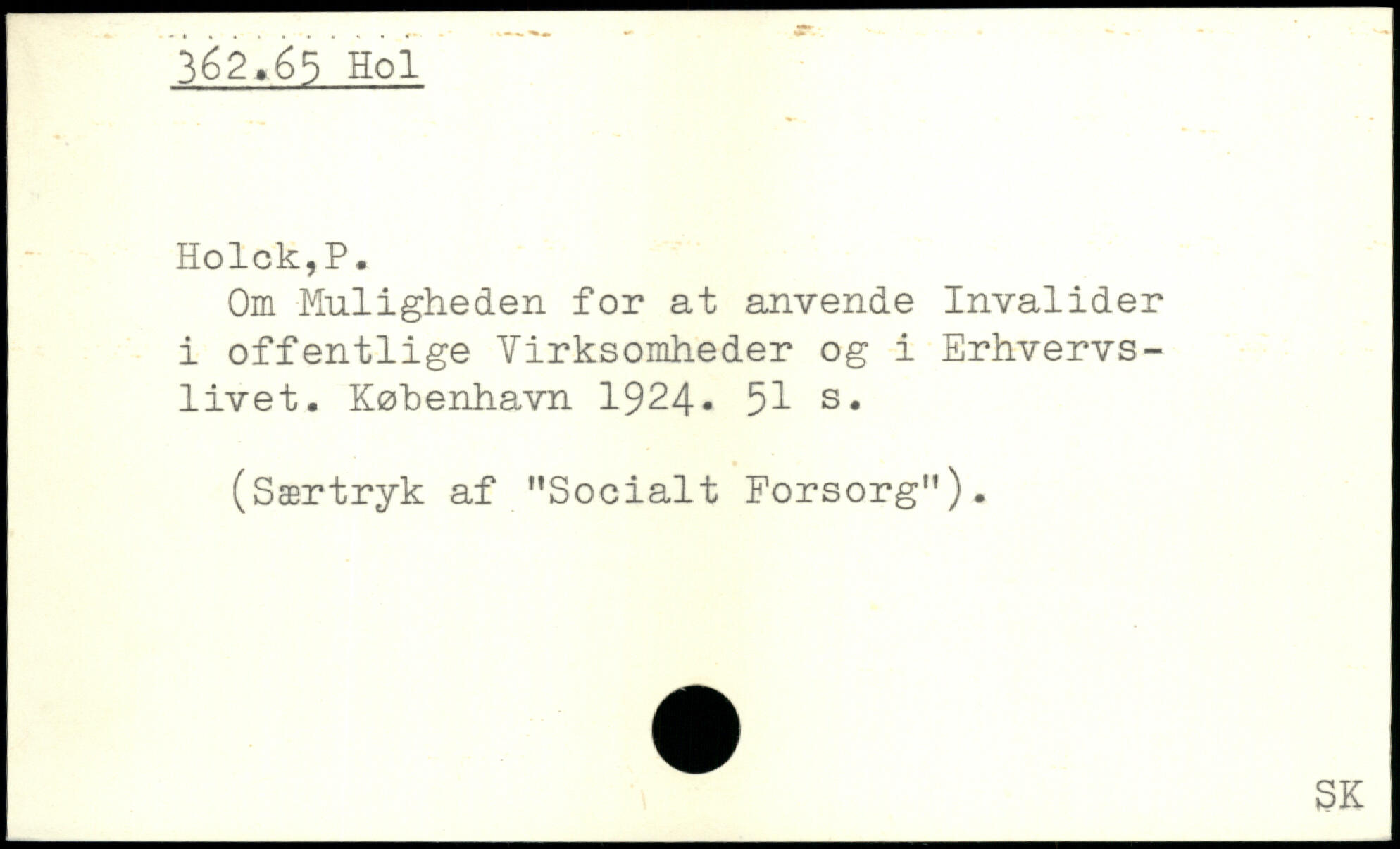 Om Muligheden for at anvende Invalider i offentlige Virksomheder og i Erhvervslivet.