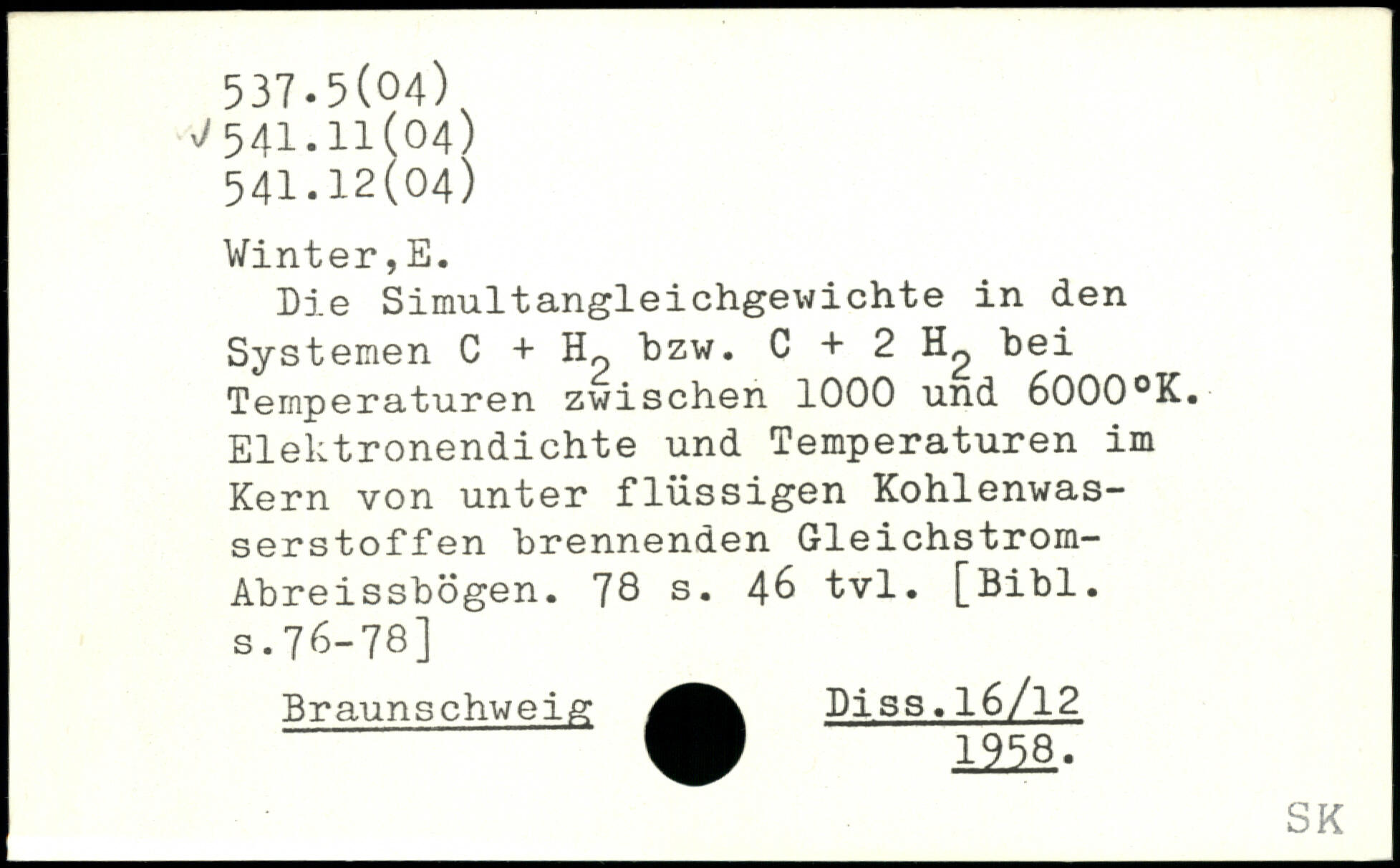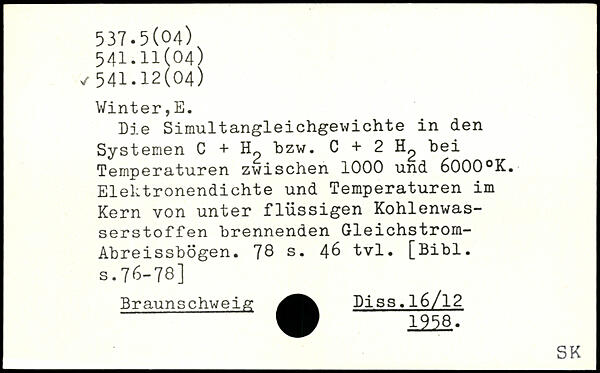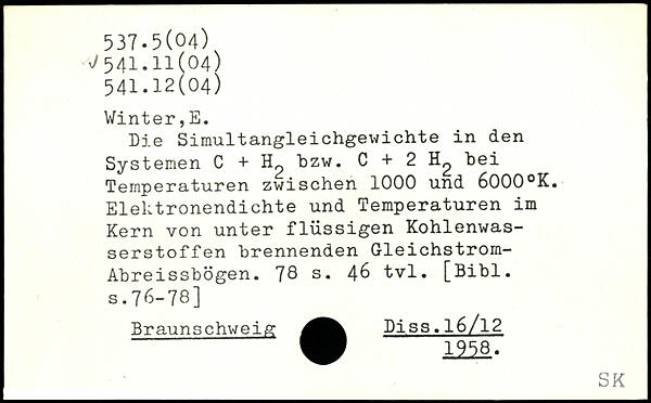 Die Simultangleichgewichte in den Systemen C + hzw. C + 2 bei Temperaturen zwischen 1000 und 6000.K. Elektronendichte und Temperaturen im Kern von unter flüssigen Kohlenwasserstoffen brennenden Gleichstrom-Abreissbögen.