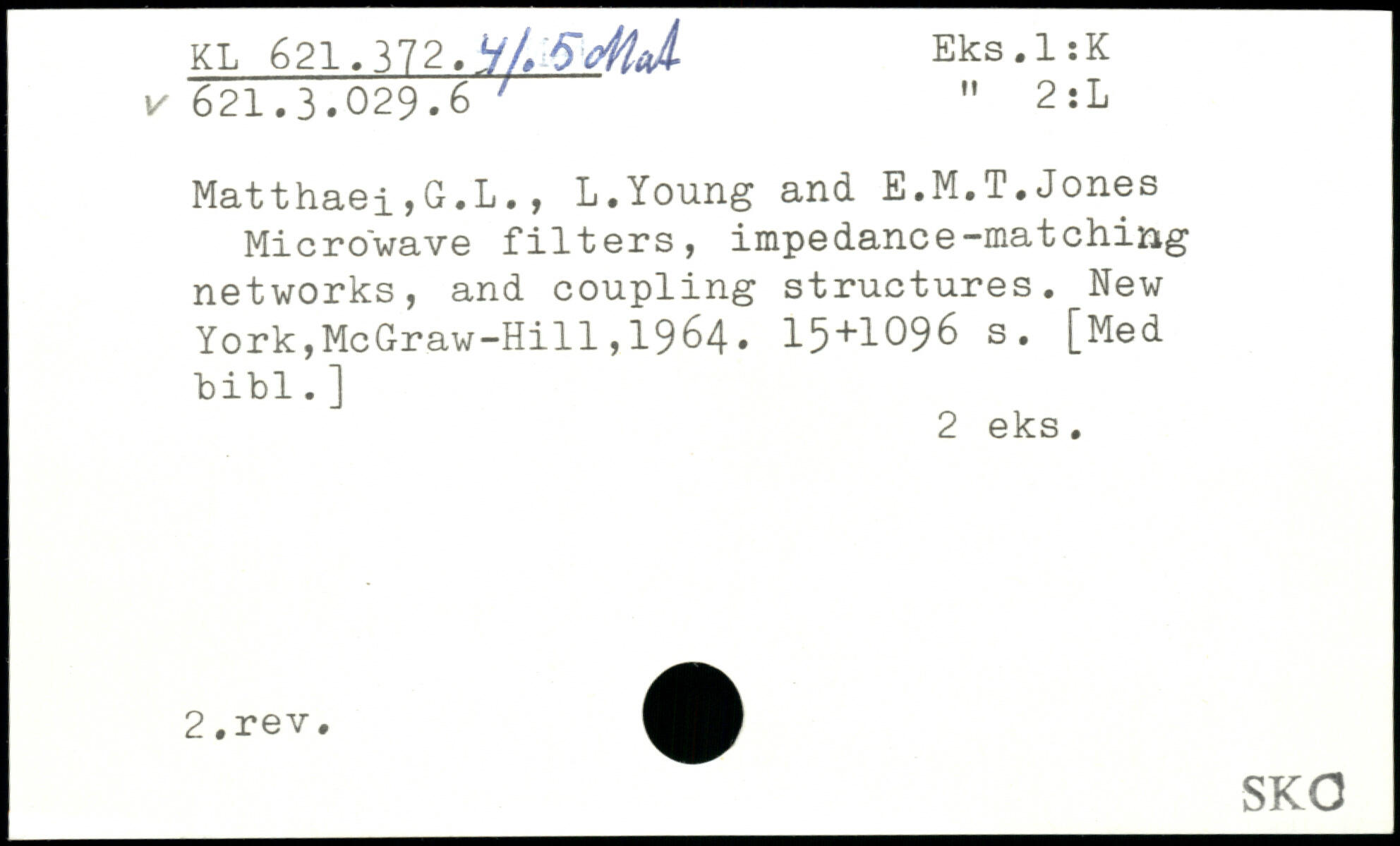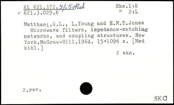 Matthaei,G.L., L.Young and E.M.T.Jones Microwave filters, impedance-matching networks, and coupling structures.