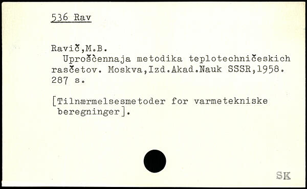 UproScennaja metodika teplotechniceskich rascetov. Moskva,Izd.Akad.Nauk SSSR,1958o