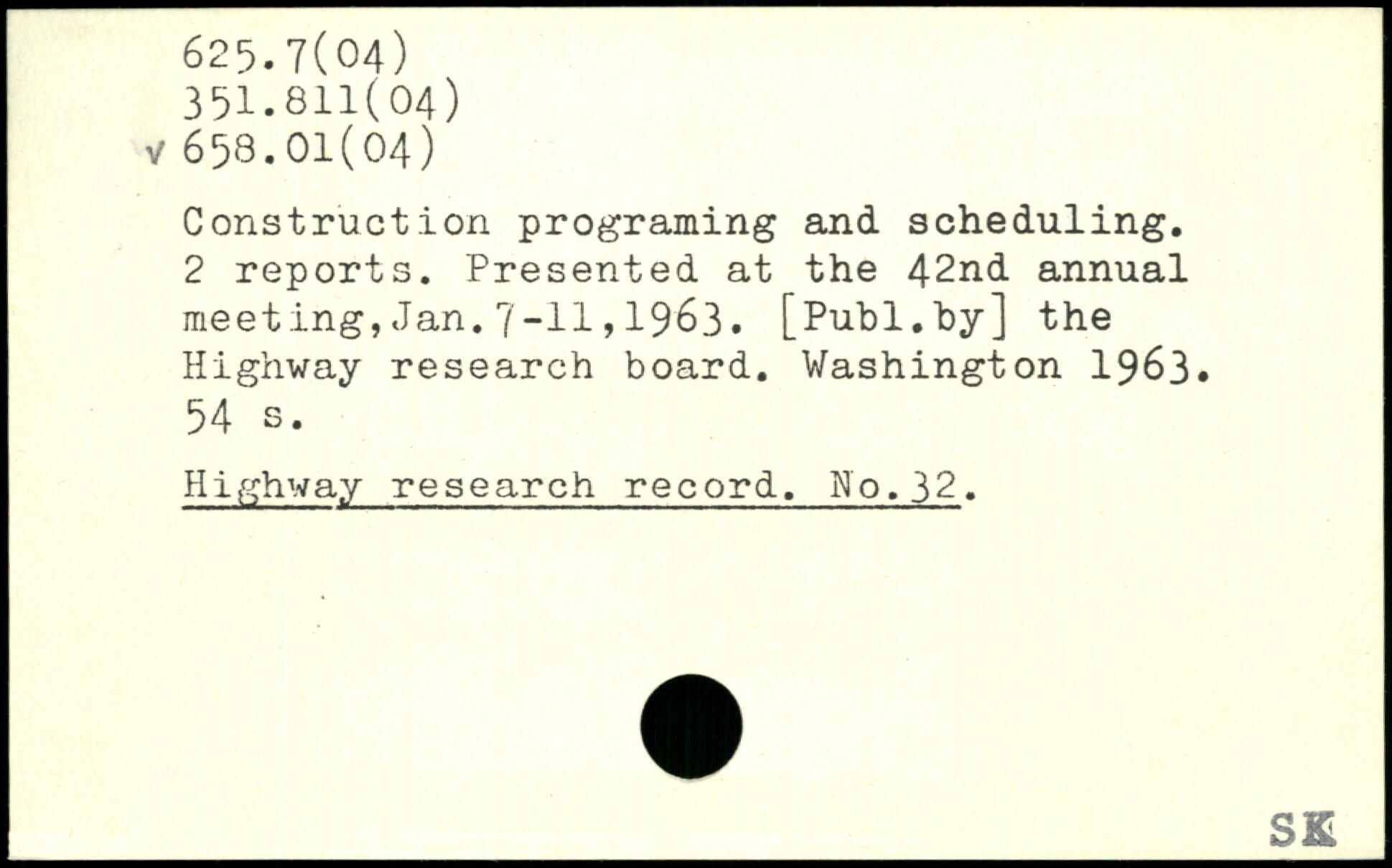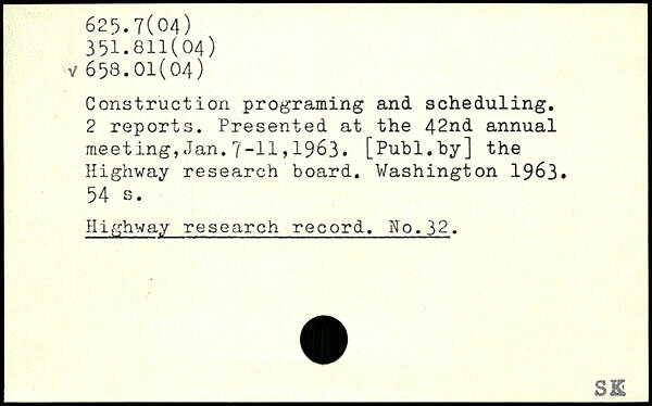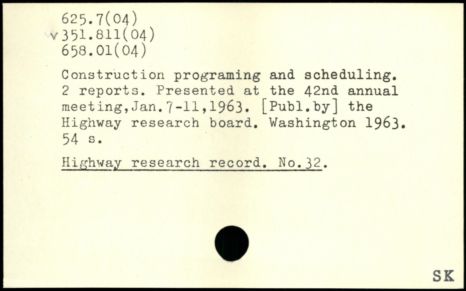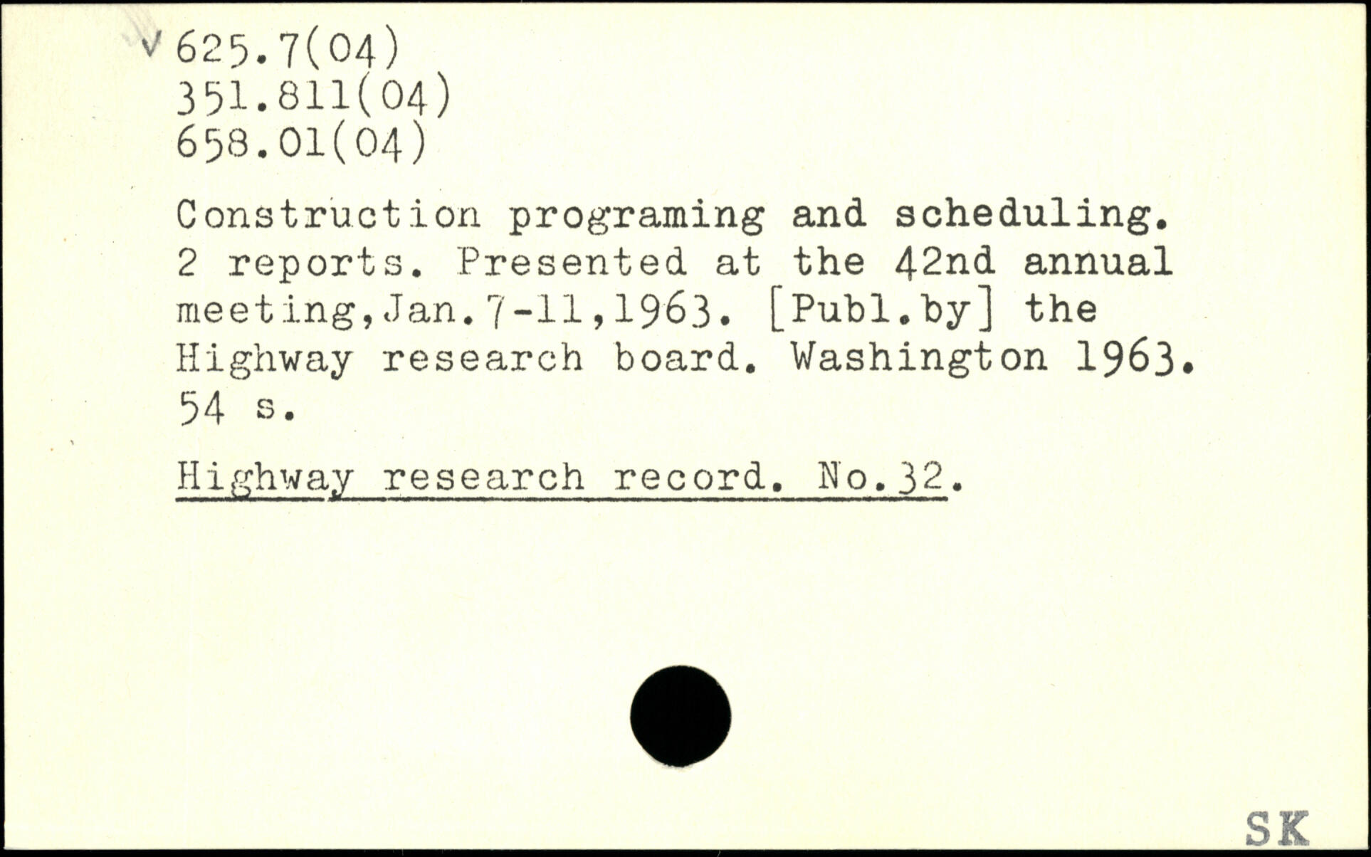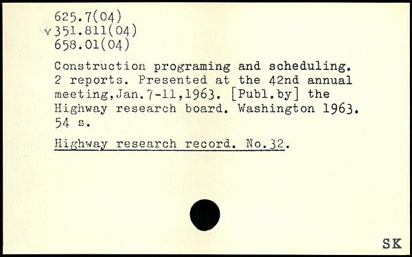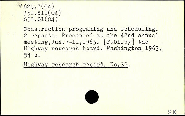 Construction programing and scheduling. 2 reports. Presented at the 42nd annual meeting,Jan.7-11,1963.