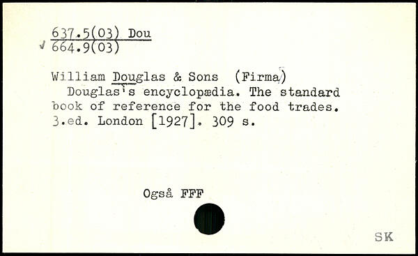W1111am Douglas & Sons (Firma) Douglas's encyclopaedia. The standard book of reference for the food trades.