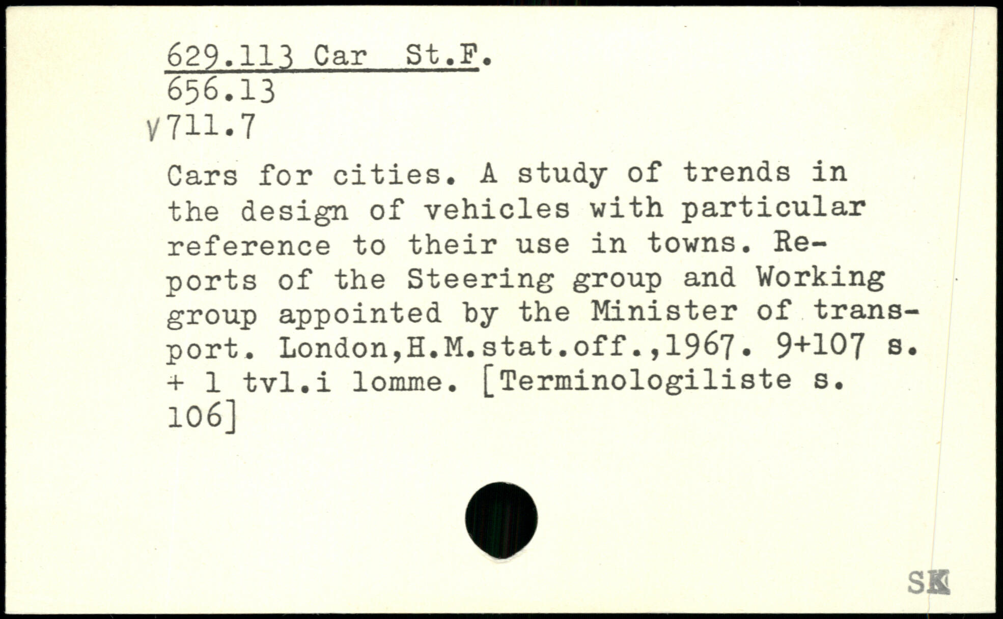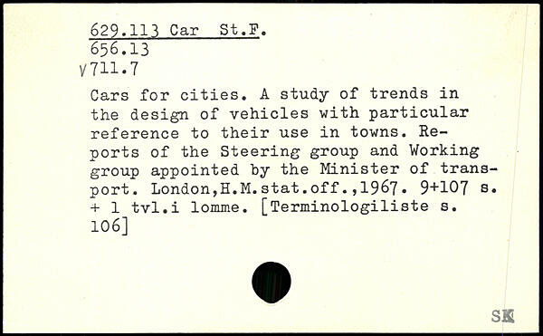 Cars for cities. A study of trends in the design of vehicles with particular reference to their use in towns. Reports of the Steering group and Working group appointed by the Minister of transport. London,H.M.stat.off1967.