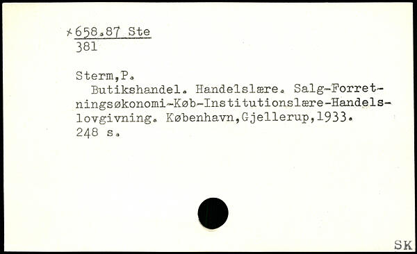 Butikshandel, Handelslære, Salg~Forretonings økonomi-Køb-Insti tutionslære-Handelslovgivning.