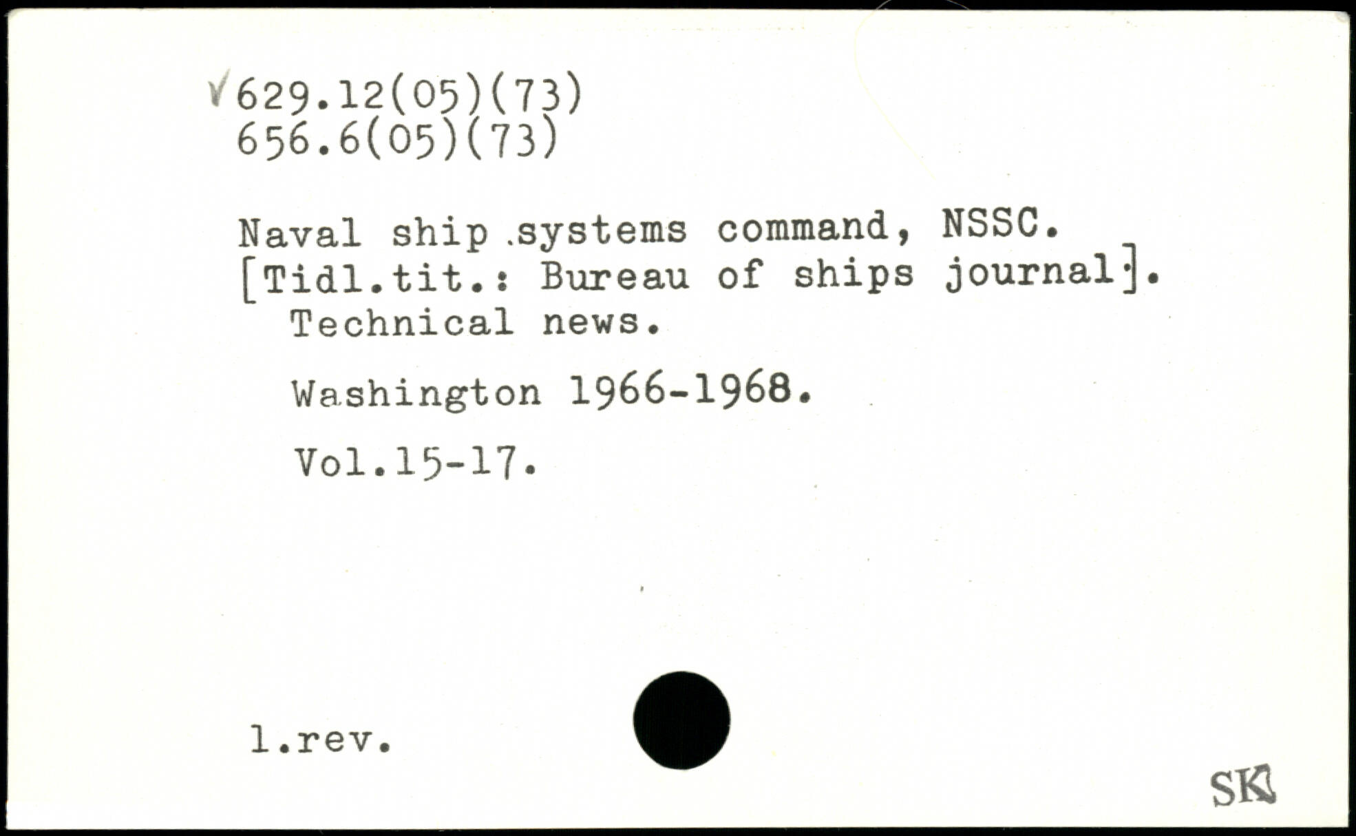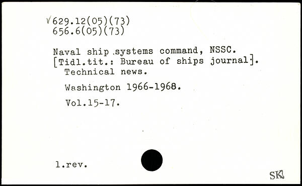 Naval ship .systems command, NSSO. [Tidl.tit.: Bureau of ships journal]. Technical news.