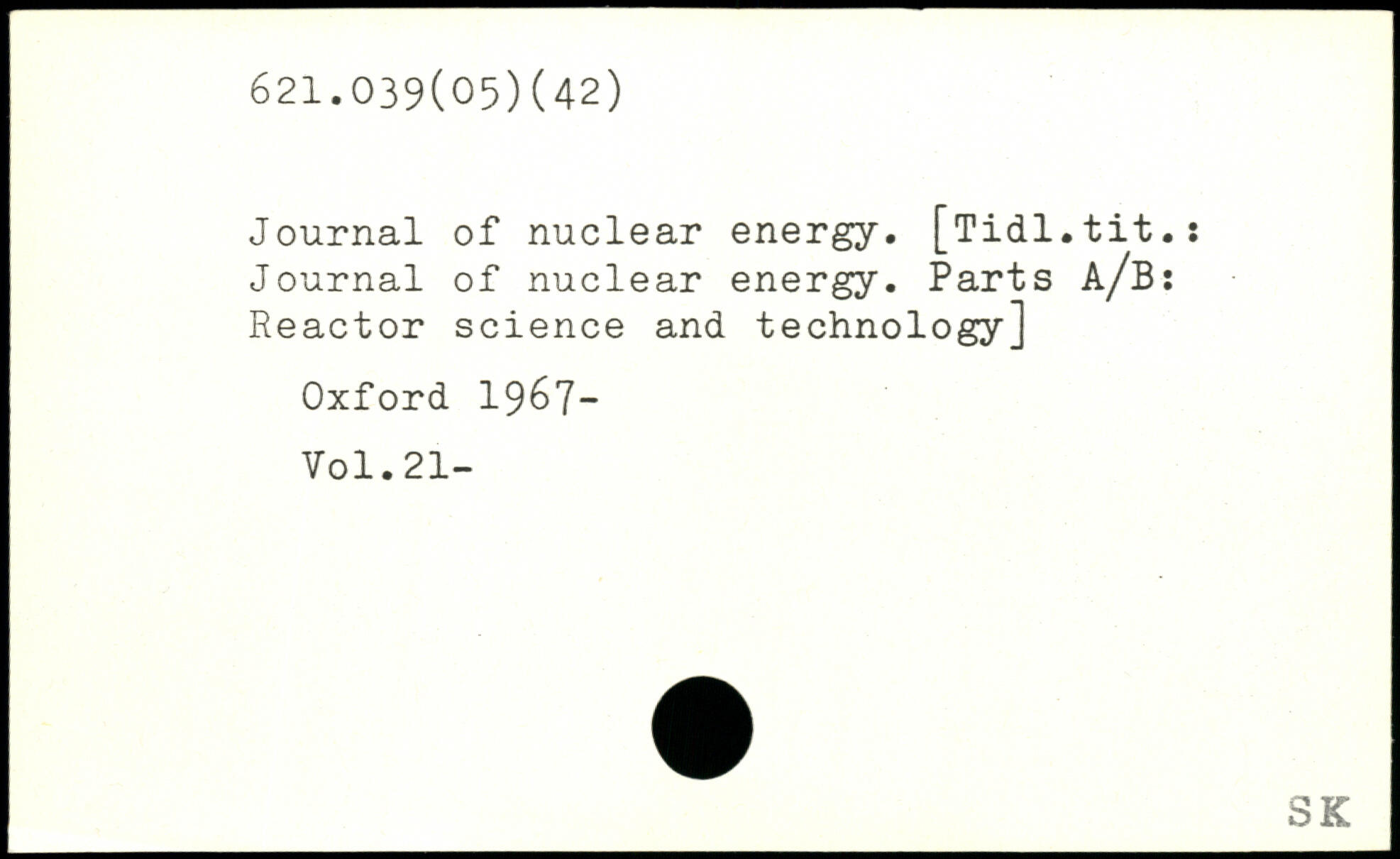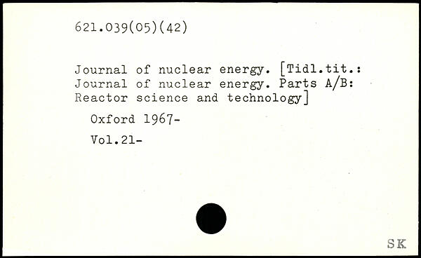 Journal of nuclear energy. [Tidl.tit.: Journal of nuclear energy. Parts Reactor science and technology]