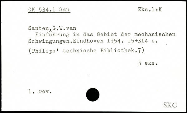 Einführung in das Gebiet der mechanischen Schwingungen.Eindhoven 1954.