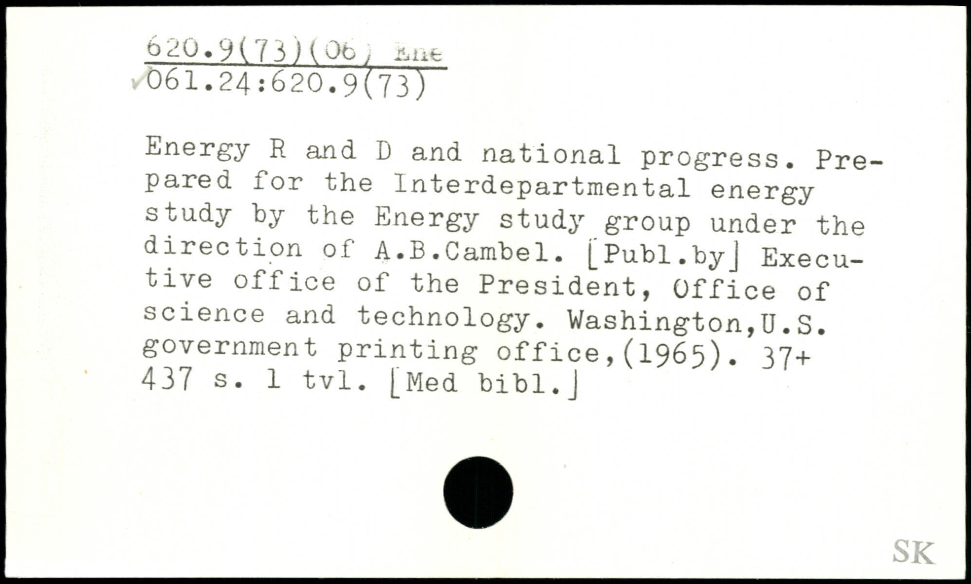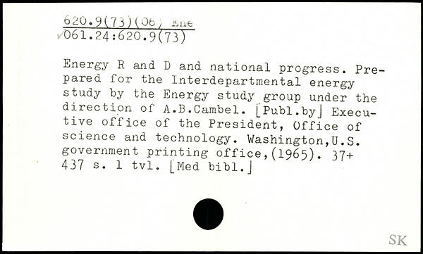 Energy R and D and national progress. Prepared for the Interdepartmental energy study by the Energy study group under the direction of A.B.Cambel.