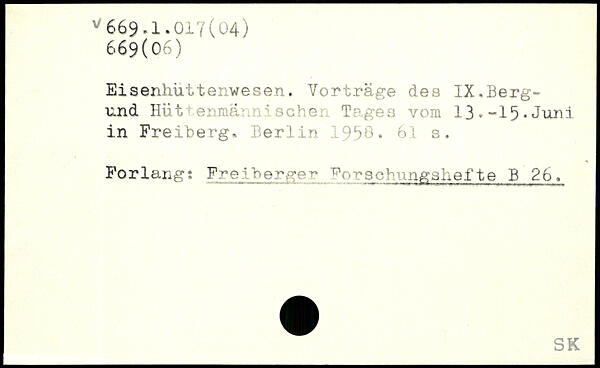 Eisenhüttenwesen. Vorträge des IX.Berg- j und Hüt. ei)mäi ) ’ sehe Tages vom 13.-15. Juni in Freiberg.