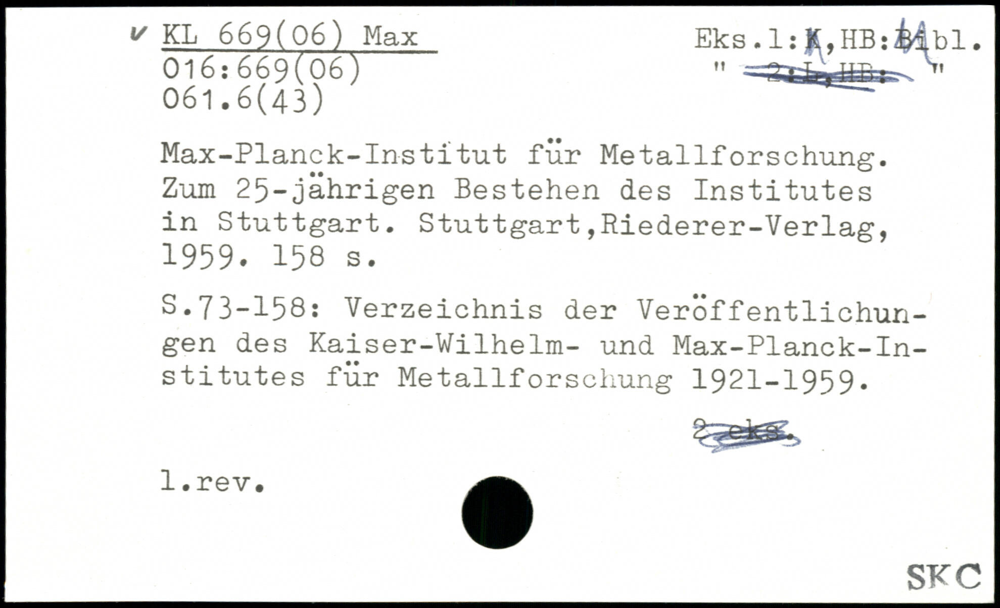 Max-Planck-Institut für Metallforschung. Zum 25-jahrigen Bestehen des Institutes in Stuttgart.