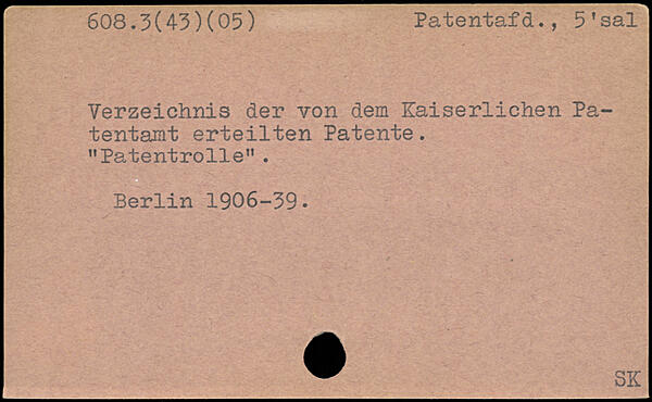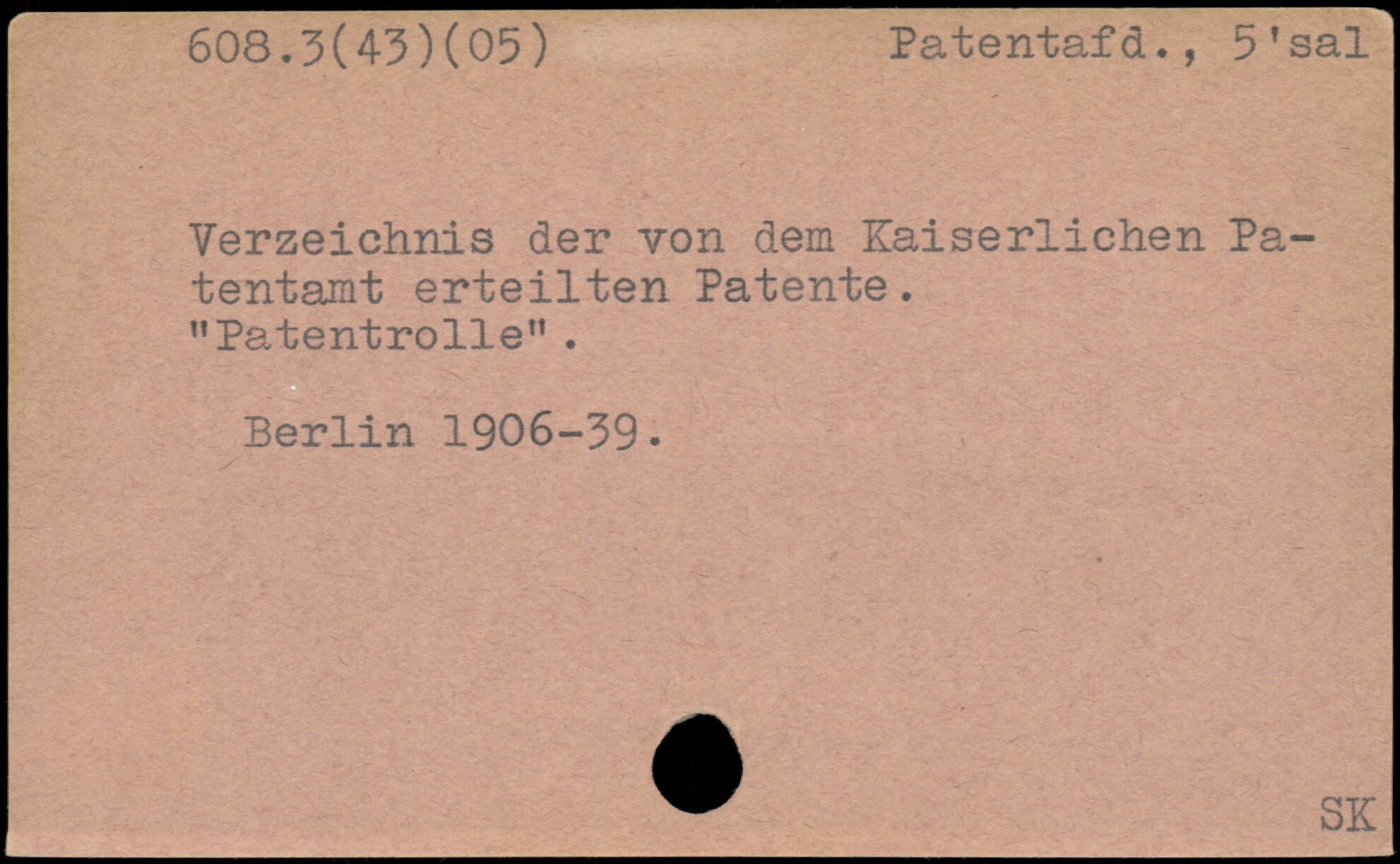 Verzeichnis der von dem Kaiserlichen Patentamt erteilten Patente. "Patentrolle".