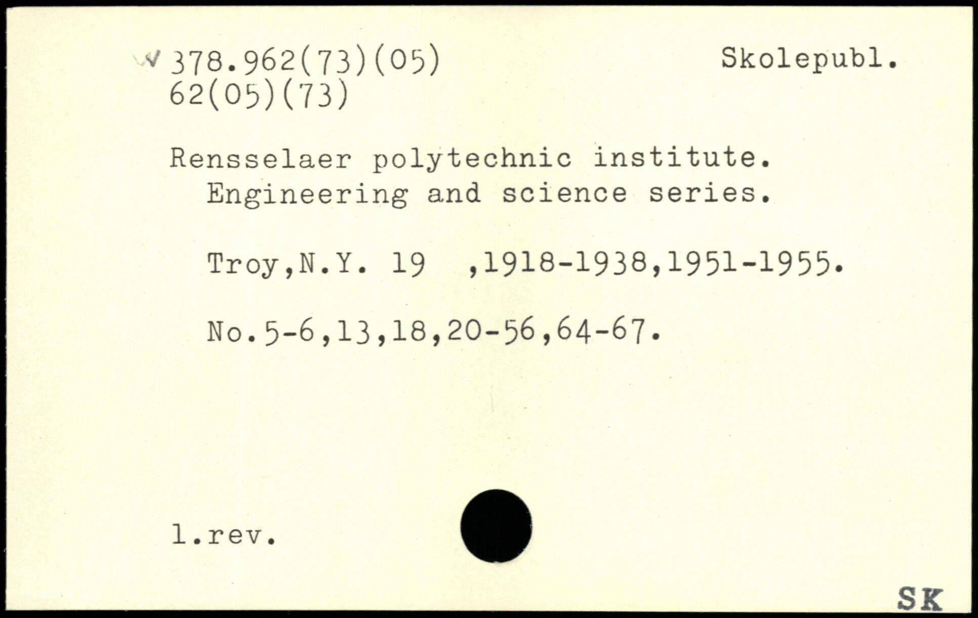 Rensselaer polytechnic institute. Engineering and science series. Troy,N.Y. 19 ,1918-1938,1951-1955. No.5-6,13,18,20-56,64-67.