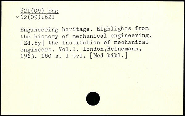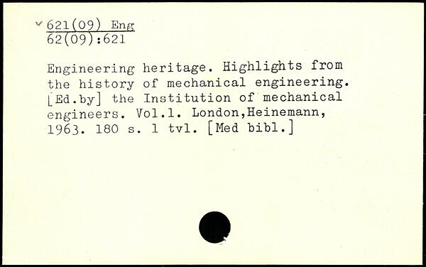 Engineering heritage. Highlights from the history of mechanical engineering. [Ed.by] the Institution of mechanical engineers.