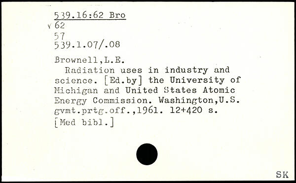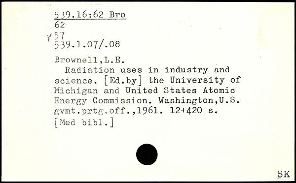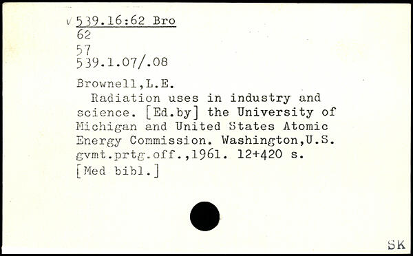 Radiation uses in industry and science. [Ed.by] the University of Michigan and United States Atomic Energy Commission. Washington,U.S. gvmt.prtg.off.,1961.