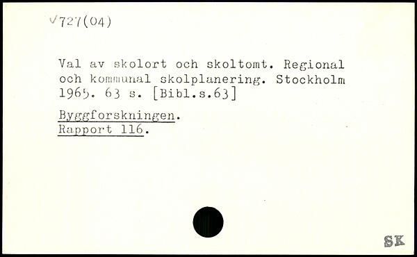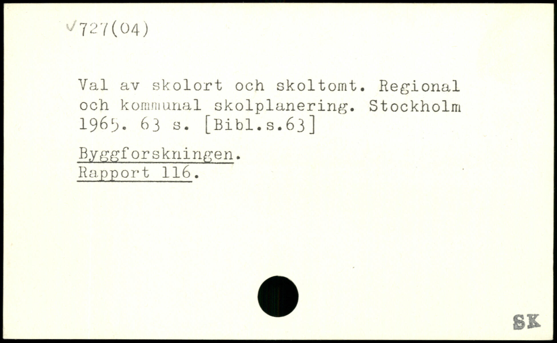 Yal av skolort och skoltomt. Regional och kommunal skolplanering. Stockholm 196^. 63 a.