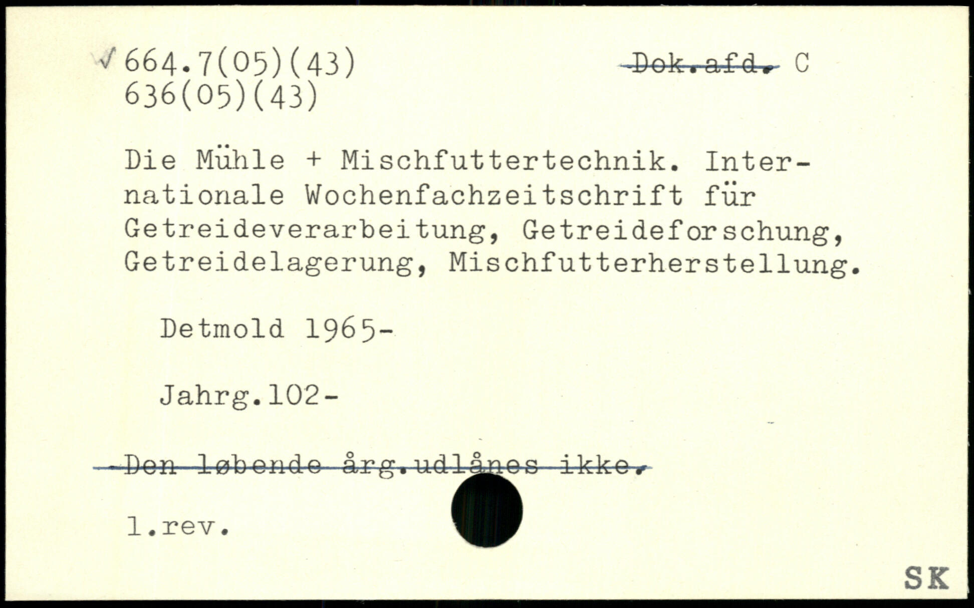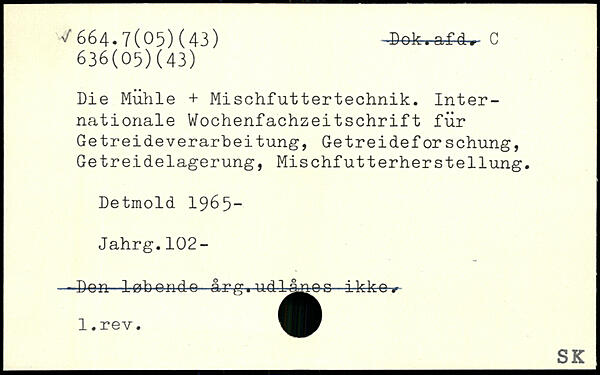 Die Mühle + Mischfuttertechnik. Internationale Wochenfachzeitschrift für Getreideverarbeitung, Getreideforschung, Getreidelagerung, Mischfutterherstellung. Detmold 1965- Jahrg.102- - Den- -løbende årg. udlånes ikke.