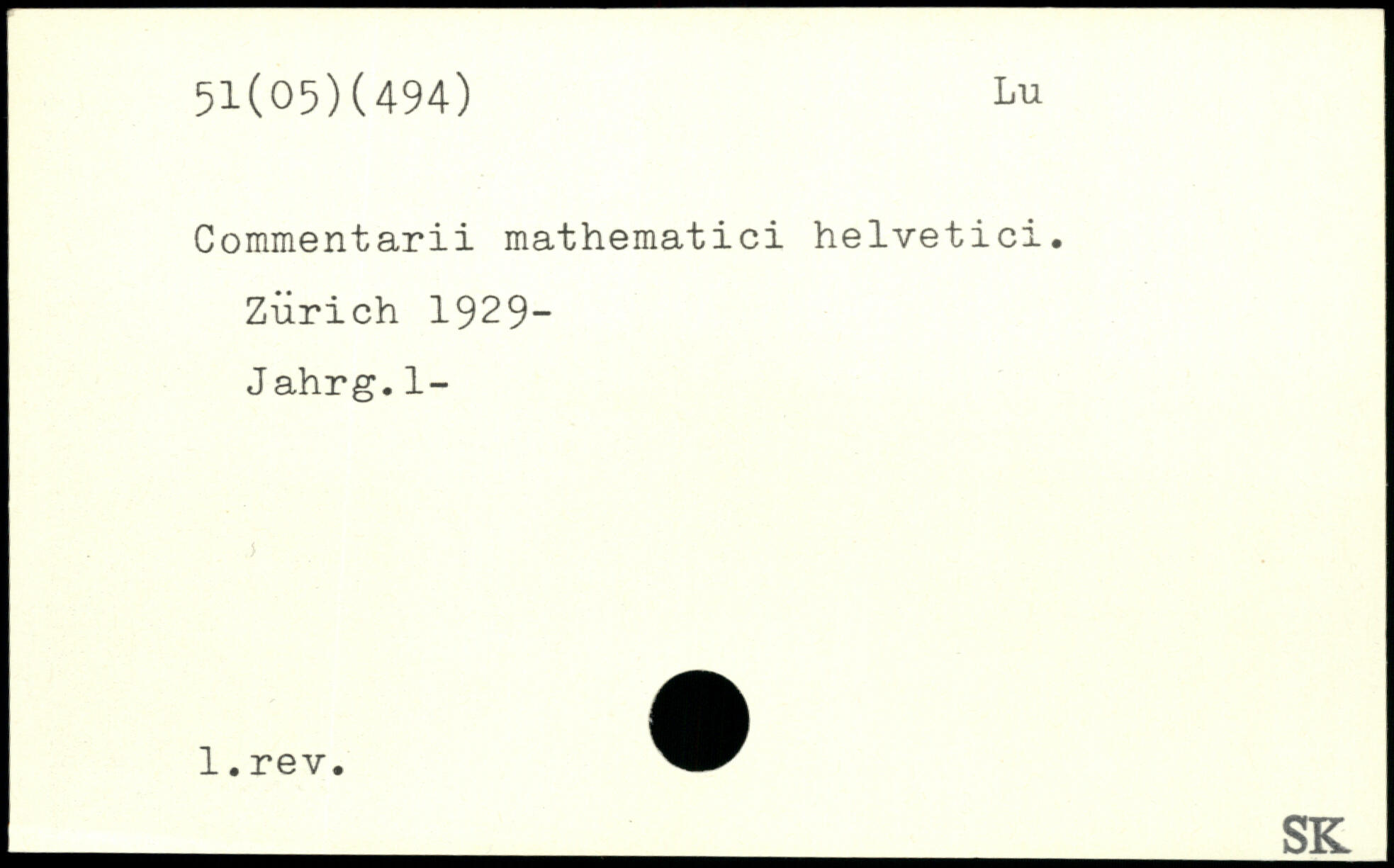 Commentarii mathematici helvetici. Zurich 1929-Jahrg.1-