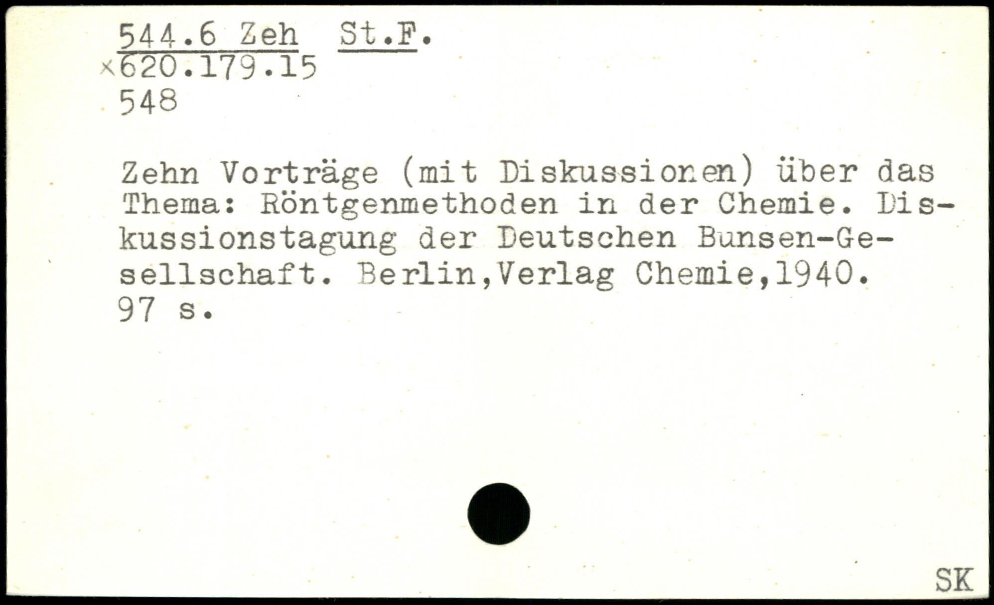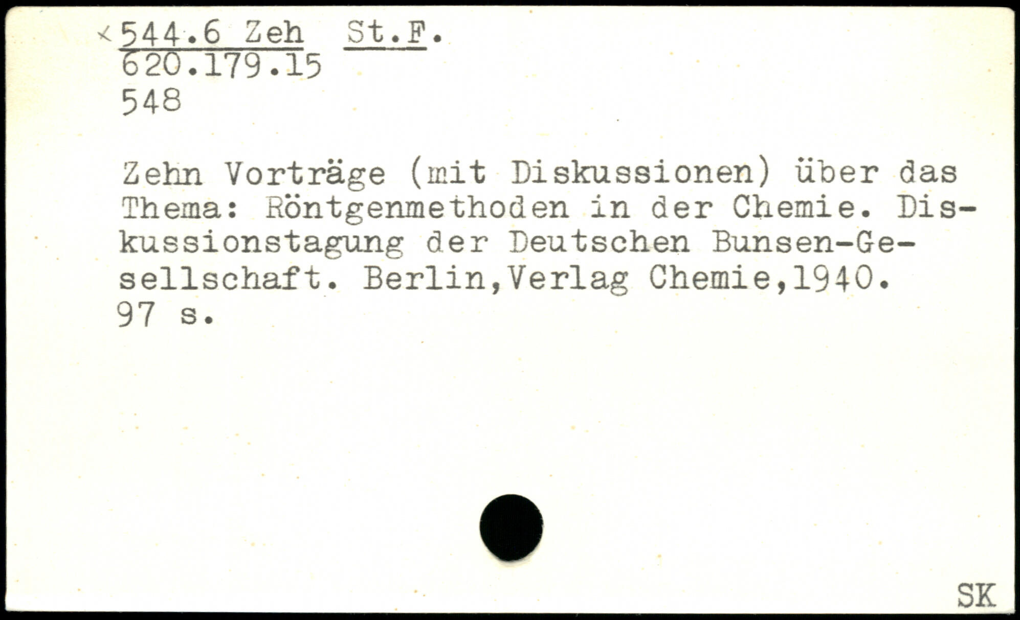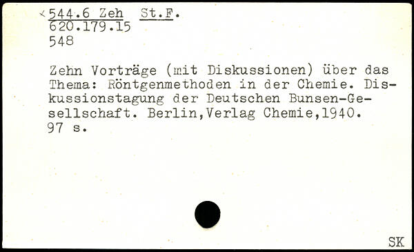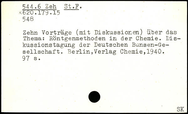Zehn Vorträge (mit Diskussionen) über das Thema: Röntgenmethoden in der Chemie. Diskussionstagung der Deutschen Bunsen-Ge-sellschaft.