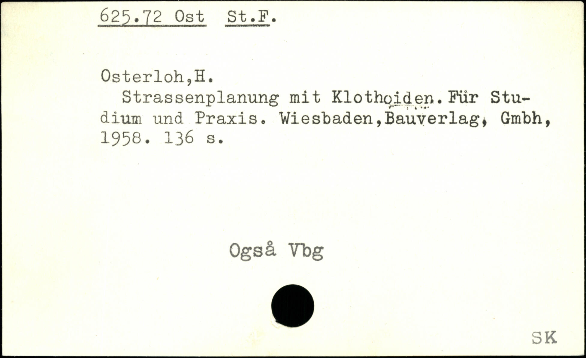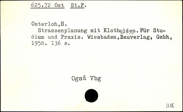 Strassenplanung mit Klothoiden. Für Studium und Praxis. Wiesbaden,Bauverlag. Gmbh, 1958.
