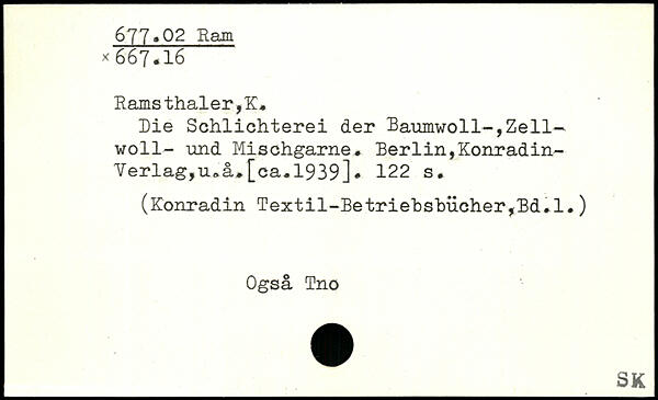 Rie Schlichterei der Baumwoll-,Zell, woll- und Mischgarne. Berlin,Konradin- Verlag,u.å.[ca.1939].