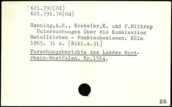 Henning,A.H., Krekeler,K. und F.Mittrop Untersuchungen über die Kombination Metallkleben - Punktschweissen.