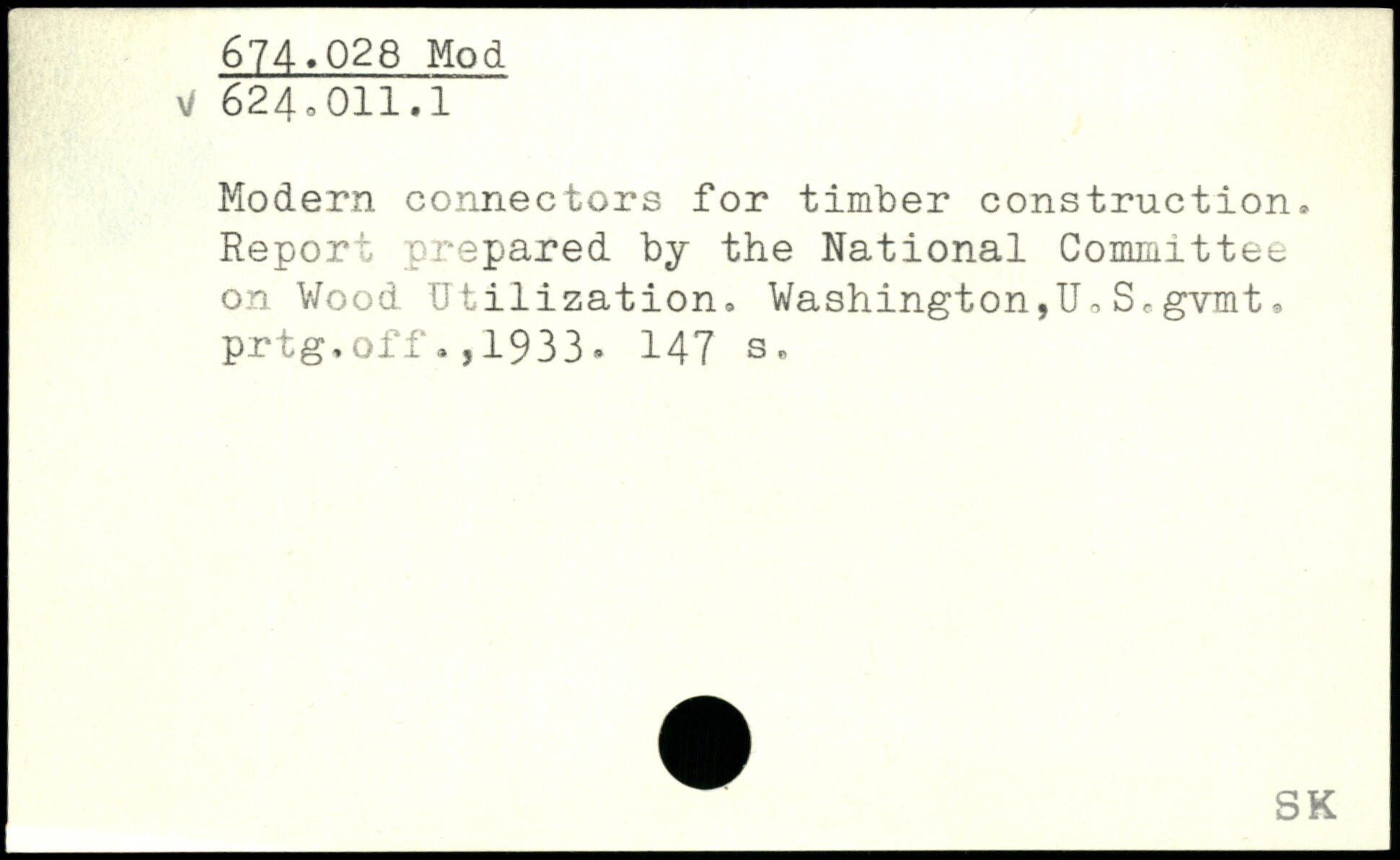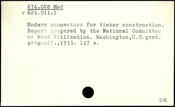 Modern connectors for timber construction. Report prepared by the National Committee on Wood Utilization. Washington,U, S. gvmt, prtg.off.,1933.