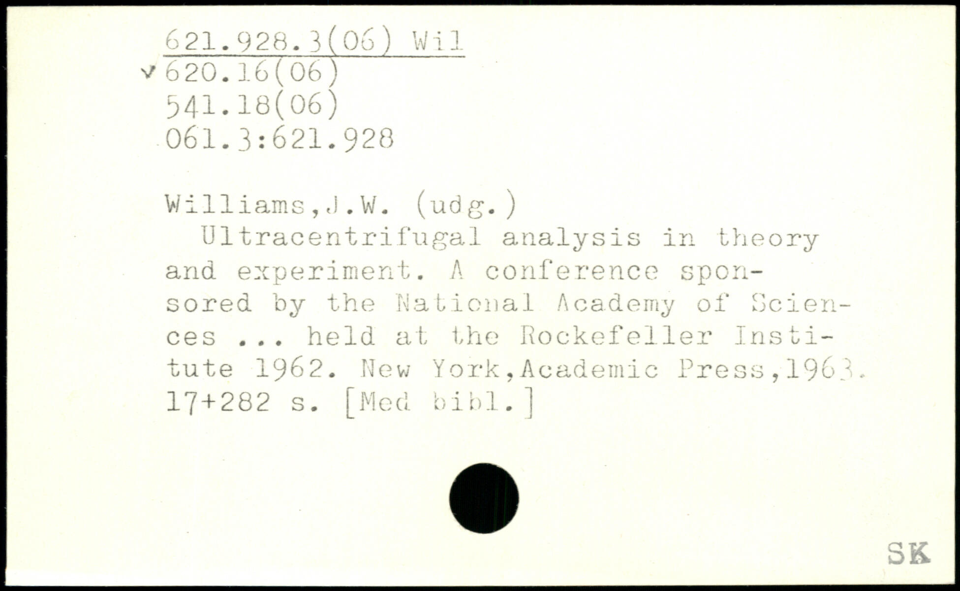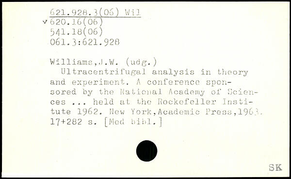 W1111ams,,). W. (udg. ) Ultracentrifugal analysis in theory and experiment. A conference sponsored by the national Academy of Sciences ... held at the Rockefeller Institute 1962.