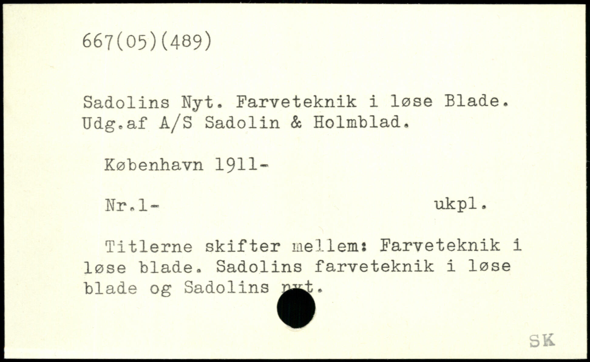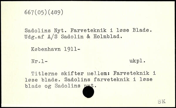 Sadolins Nyt. Farveteknik i løse Blade. Udg.af A/S Sadolin & Holmblad.
